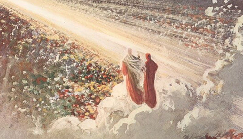 Il Purgatorio è diviso in sette cornici che si restringono man mano che si sale verso il Paradiso per raggiungere la salvezza. Qui le anime si purificano dai sette peccati capitali: superbia, invidia, ira, accidia, avarizia, gola e lussuria. Nell'ultima cornice si trova il Paradiso terrestre: l'ultimo gradino da superare per poter entrare in Paradiso.
