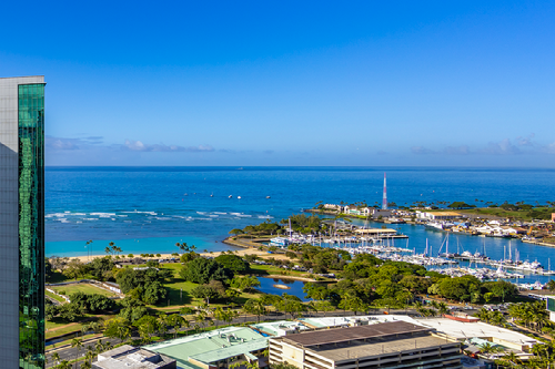 This 40th-floor home soars above Honolulu's southern coastline; open up to paradise via floor-to-ceiling sliding glass doors, where soothing ocean breezes and majestic vistas of the Pacific Ocean, Ala Moana Beach Park, urban Honolulu, and captivating sunsets are your backdrop for everyday life.