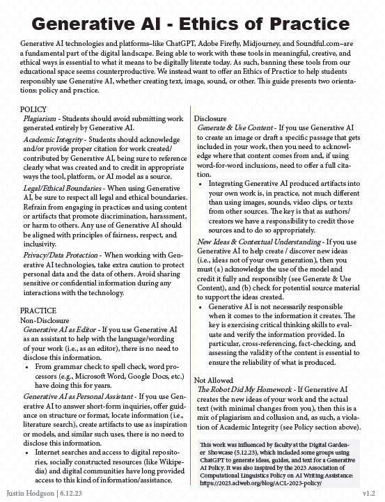 - Remind students of the policy for each relevant assignment by including it, in some form, on assignment handouts/guides and Canvas pages