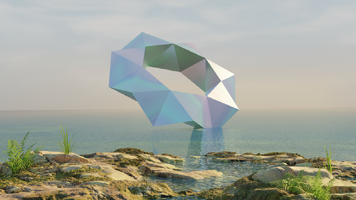 - A new monohedral polyhedron of type 3 with genus 1. It has 28 vertices, 56 faces and 84 edges, and it exhibits dihedral D_7 symmetry. The image was rendered in Blender and the polyhedron was set in scene with an iridescent surface of mother-of-pearl. The picture is part of the article "New families of monohedral polyhedra", submitted for publication in the "Journal of Mathematics and the Arts", in collaboration with Nina Hungerbühler and Marcel Pirron. Entry in the Wiki Science Competition 2023, a global photo contest. Photo by Norbert Hungerbühler - own work, CC BY 4.0.