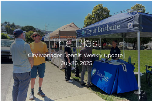 This concludes my City Manager's Weekly Update; if it was forwarded to you or you saw it on social media and would like to subscribe, sign up here. Find all of our subscription lists at brisbaneca.org/subscribe, latest news at brisbaneca.org/news, and upcoming meetings, Council Subcommittee meetings, and events at brisbaneca.org/meetings. As always, feel free to let me know your thoughts on the Blast. Thanks for reading and staying engaged!