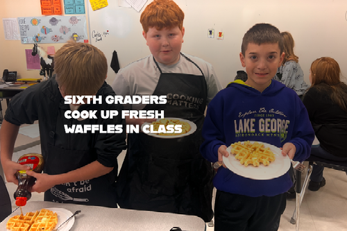 Sixth grade students continued building their kitchen skills in cooking class by making fresh waffles from scratch. The hands-on activity gave them the opportunity to practice measuring, mixing, and following a recipe while gaining confidence as young chefs. A special thank-you to Ms. Cantrell for leading this fun and delicious lesson. The students enjoyed both the experience—and the waffles!