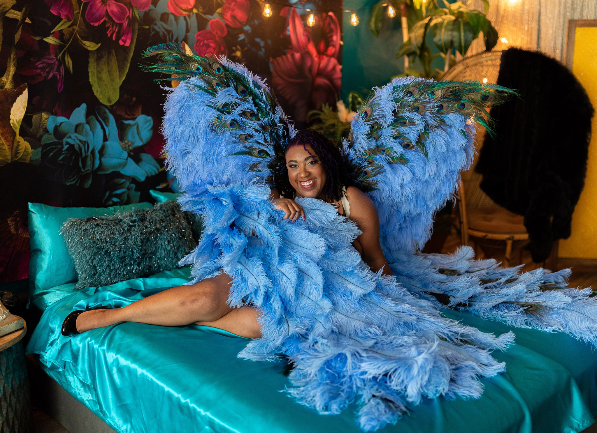 Check out the WINGS! These wings are custom made by Leah Maria Couture!
