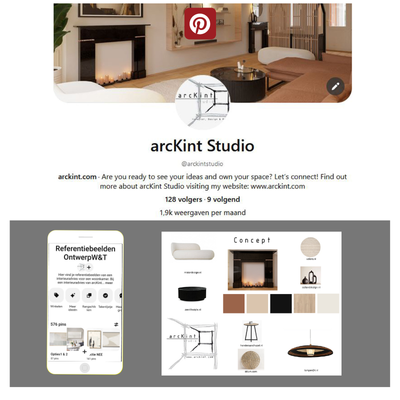 Op een gezamenlijk Pinterest-bord delen ze verschillende referentiebeelden en gewenste elementen.