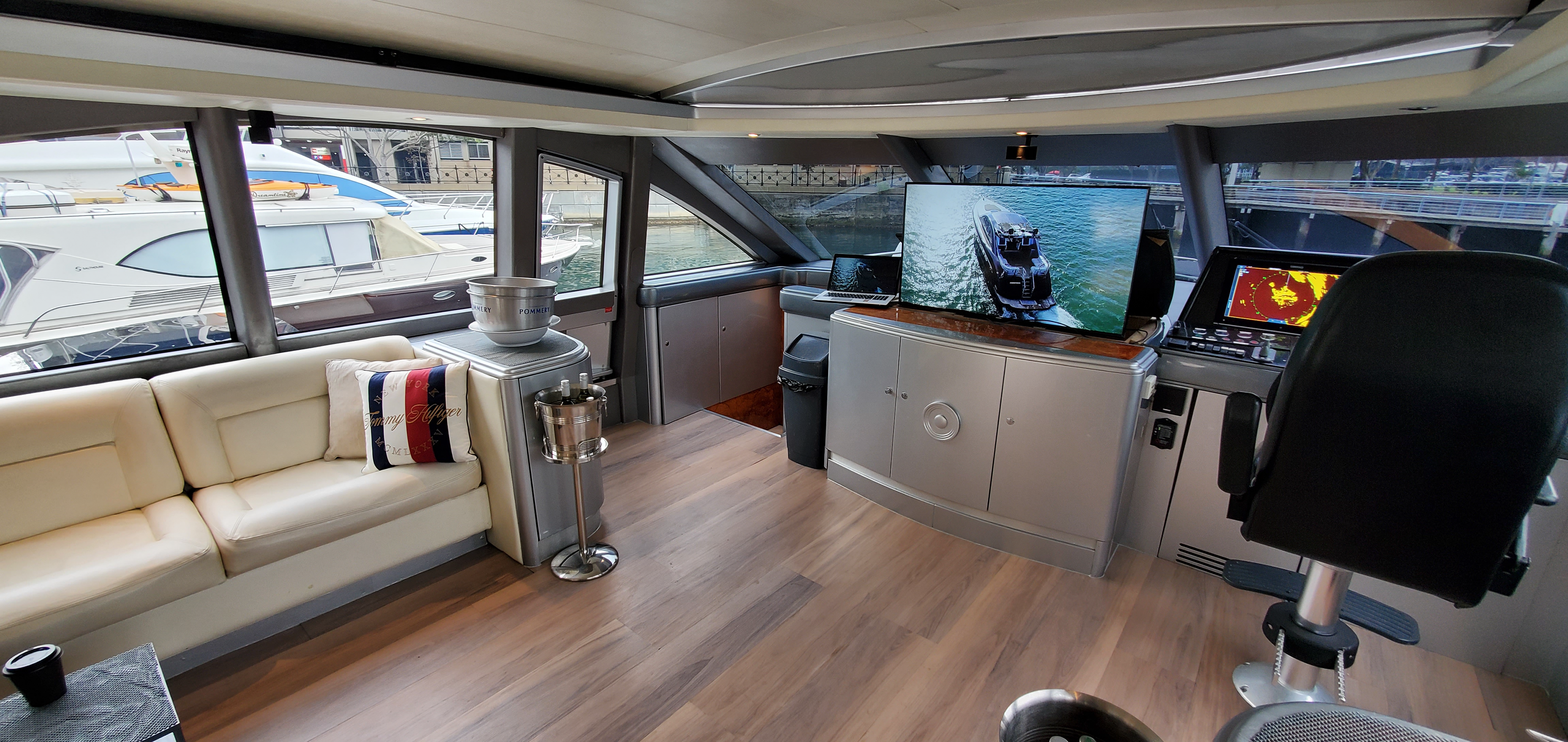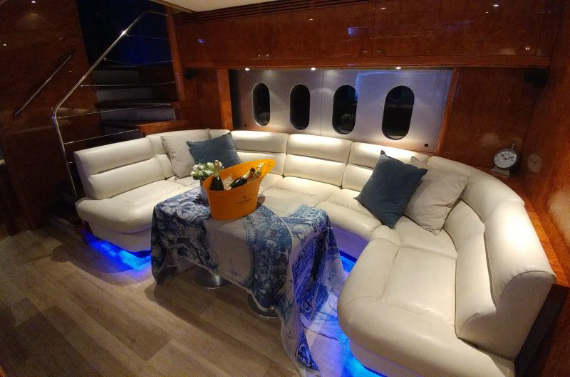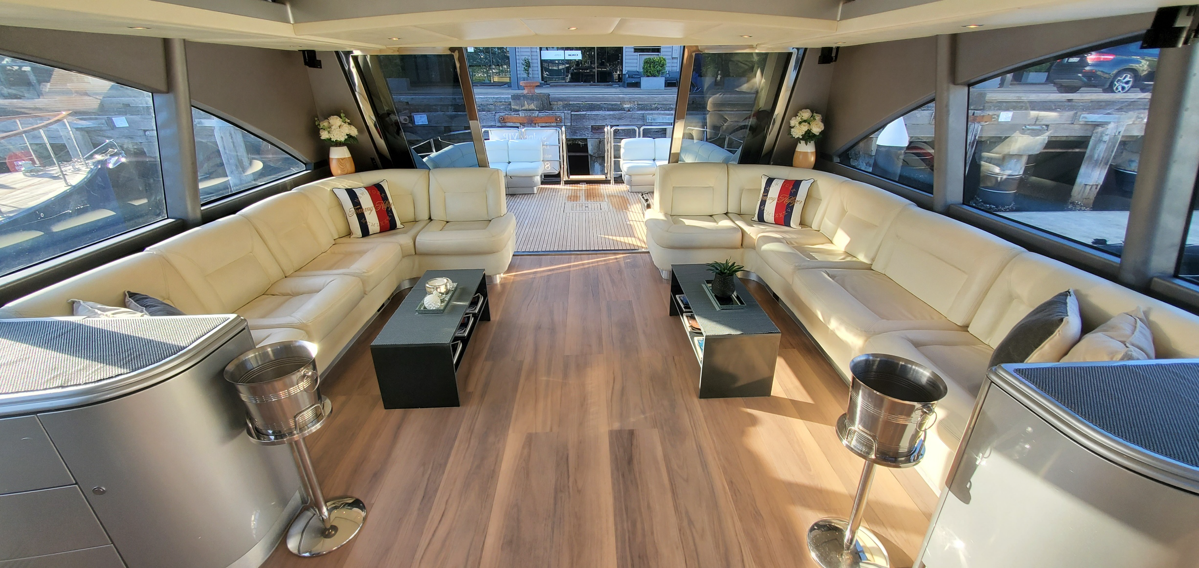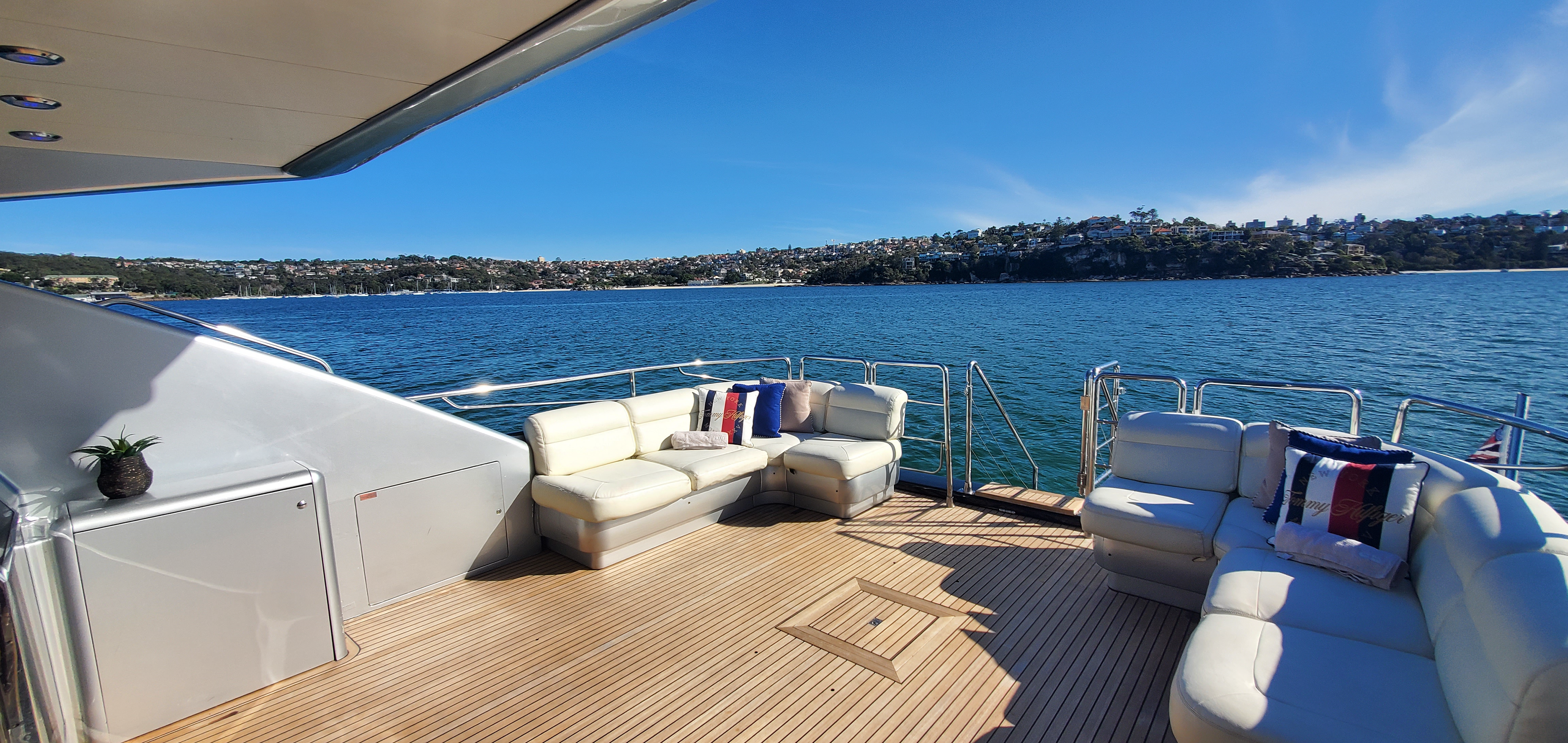 This luxury 77’ Warren yacht relaunched following a complete refurbishment with luxury fit out and reconfiguration of the upper saloon to offer huge entertaining space for cruises on Sydney Harbour. The upper saloon offers a huge open plan joined interior / exterior deck area that offers guest uncluttered floor space for mingling with other guests but combined with a huge amount of comfortable lounge seating for those that would prefer to relax and chat while watching the harbour scenery pass by.