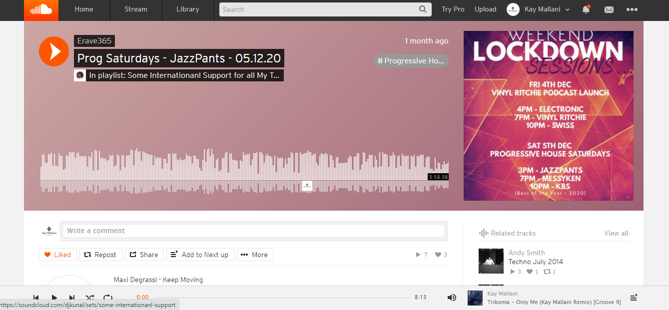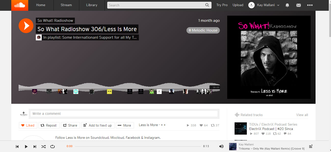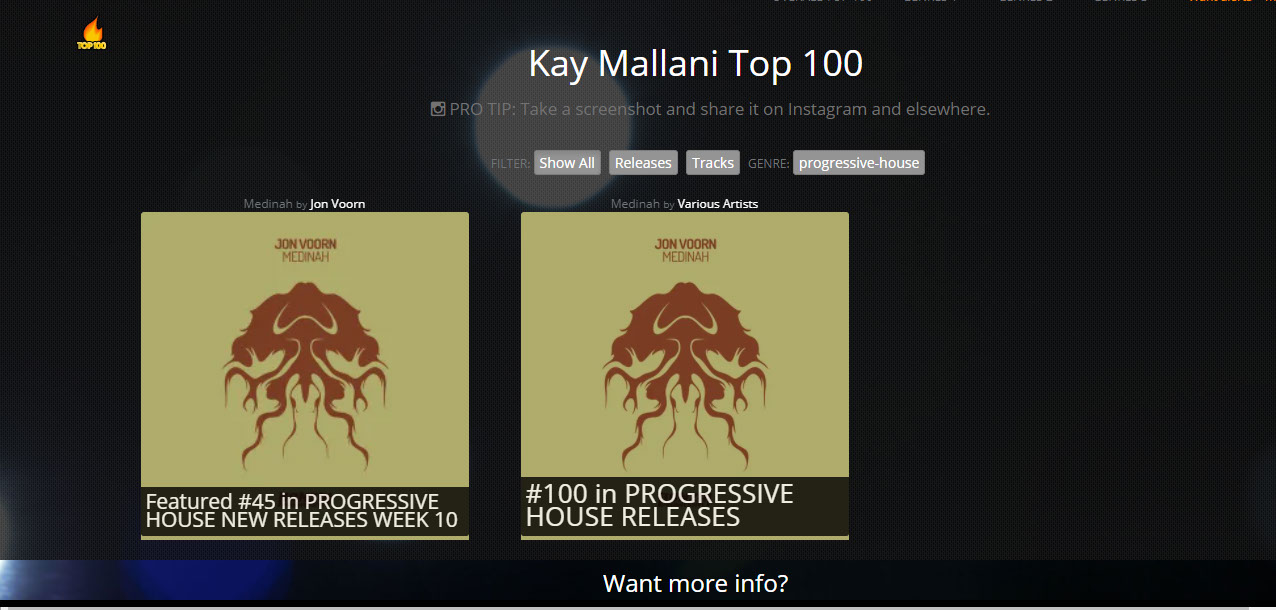 AFTER THE HUGE SUCCESS FOR MAHESHA EP ON BONZAI RECORDS KAY MALLANI WAS BACK AGAIN ON THE BONZAI LABEL BUT NOW WITH A REMIX FOR ONE OF THEIR FINEST ARTIST JON VOORN . THE TRACK NAMED MEDINAH A REMIX OF KAY MALLANI . THE EP HIT A HUGE SUCCESS MAKING IT TO TOP 100 BEATPORT RELEASES ON PROGRESSIVE HOUSE CHARTS . THE TRACK GARNERED A HUGE SUPPORT AROUND THE GLOBE BY DRIK MULLER, RTO(RADIO TIME OUT) BY ERVAN AND MANY OTHER INTERNATIONAL ARTISTS .MEDINAH KAY MALLANI REMIX ALSO MADE IT TO THE PODCASTS OF LESS IS MORE BY THE PODCAST NAME "SO WHAT RADIO SHOW 306 "AND ALSO ON GLOBAL TRANCELATIONS PODCAST 249 BY DENZO