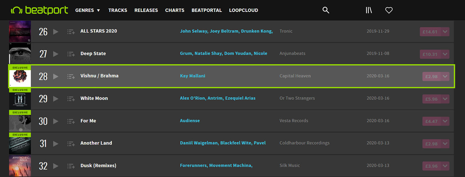 KAY MALLANI - MAHESHA (ORIGINAL MIX) ENTERED BEATPORT TOP 34 RELEASE CHARTS ALSO GOT FEATURED AMONG BEATPORT BEST PROGRESSIVE HOUSE CHARTS. THE TRACK GARNERED SUPPORT FROM DRIK MULLER , NILES BAXTER AND MAY OTHER ARTISTS!