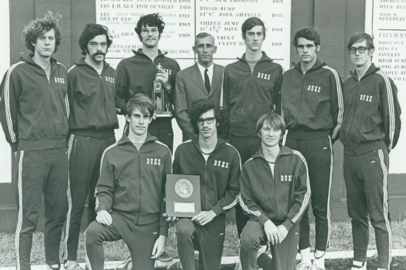 Background Image: Coach Al Buehler with the ACC Cross-Country Championship Team, 1970. Courtesy of the Duke University Archives.