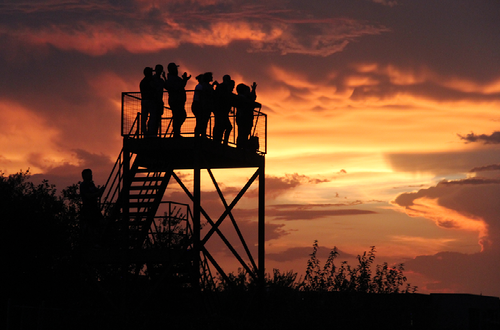 After an almost hour-long delay due to a threat of lightning, the band began another year of Bandapalooza. Up on the conductors’ podium, Mr. Junkin, the band’s associate director, spoke to the band from up above, surrounded by the evening’s sunset.