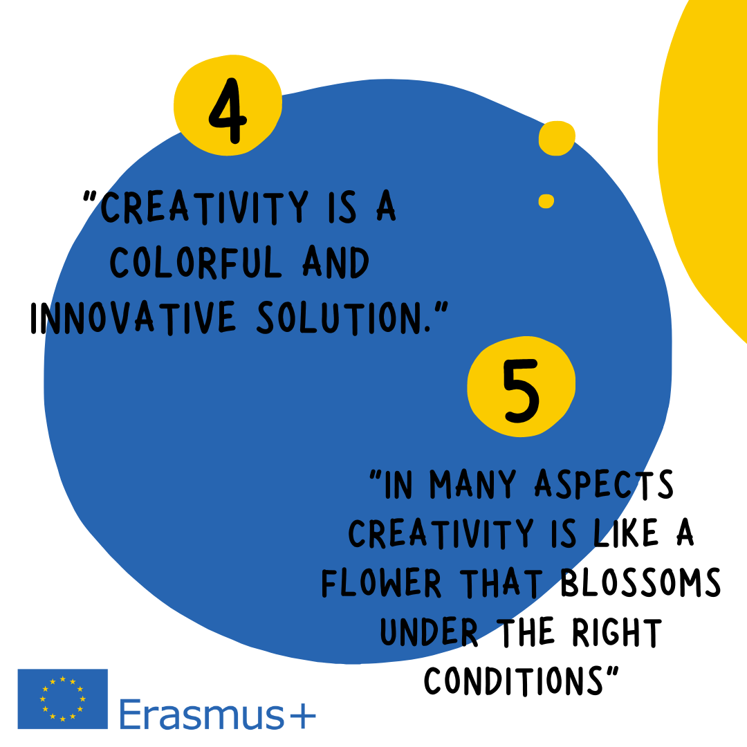Creativity is a vital aspect of our learning process. It is directly linked to one's culture, social environment and the space provided for creative freedom. The Erasmus+ Project is a fitting example of this specific space, inspired by the intercultural and open-minded company of international students. We would like to dig into this topic and present some of our creative output to showcase the importance of creativity within the Eramus project.