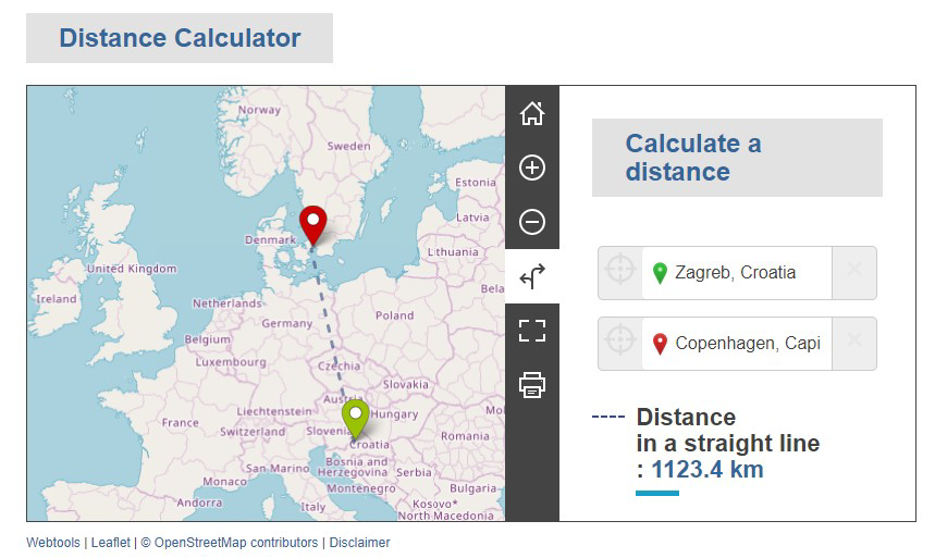 4) Travel (putovanje) pokriva troškove povratnog putovanja sudionika i osoba u pratnji između mjesta iz kojeg dolaze i destinacije na kojoj se odvija aktivnost mobilnosti. Osim polja koja su automatski popunjena prethodnim unosom zemlje mobilnosti i broja sudionika/osoba u pratnji, potrebno je iz padajućeg izbornika Travel Distance izabrati kategoriju udaljenosti u odnosu na zemlju u koju se putuje. Udaljenost se izračunava kalkulatorom udaljenosti (alat Europske komisije), unosom zemlje/grada u polja Start i End.