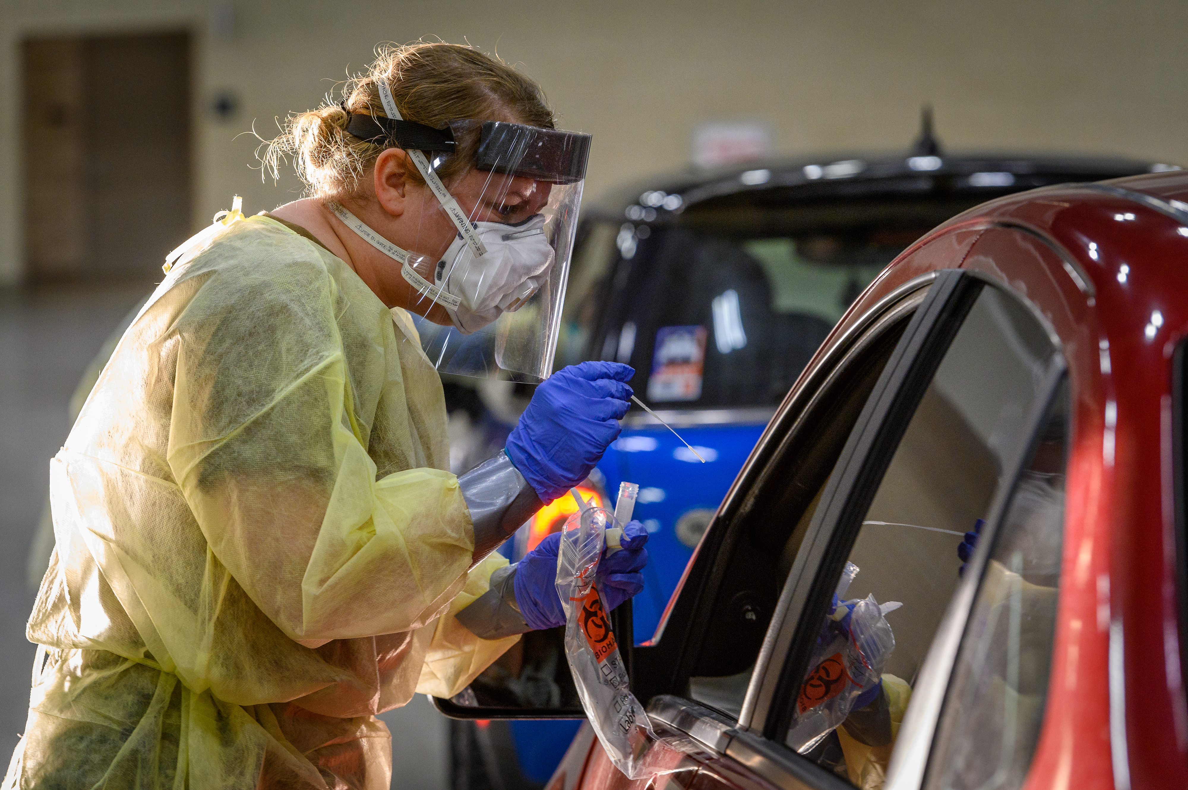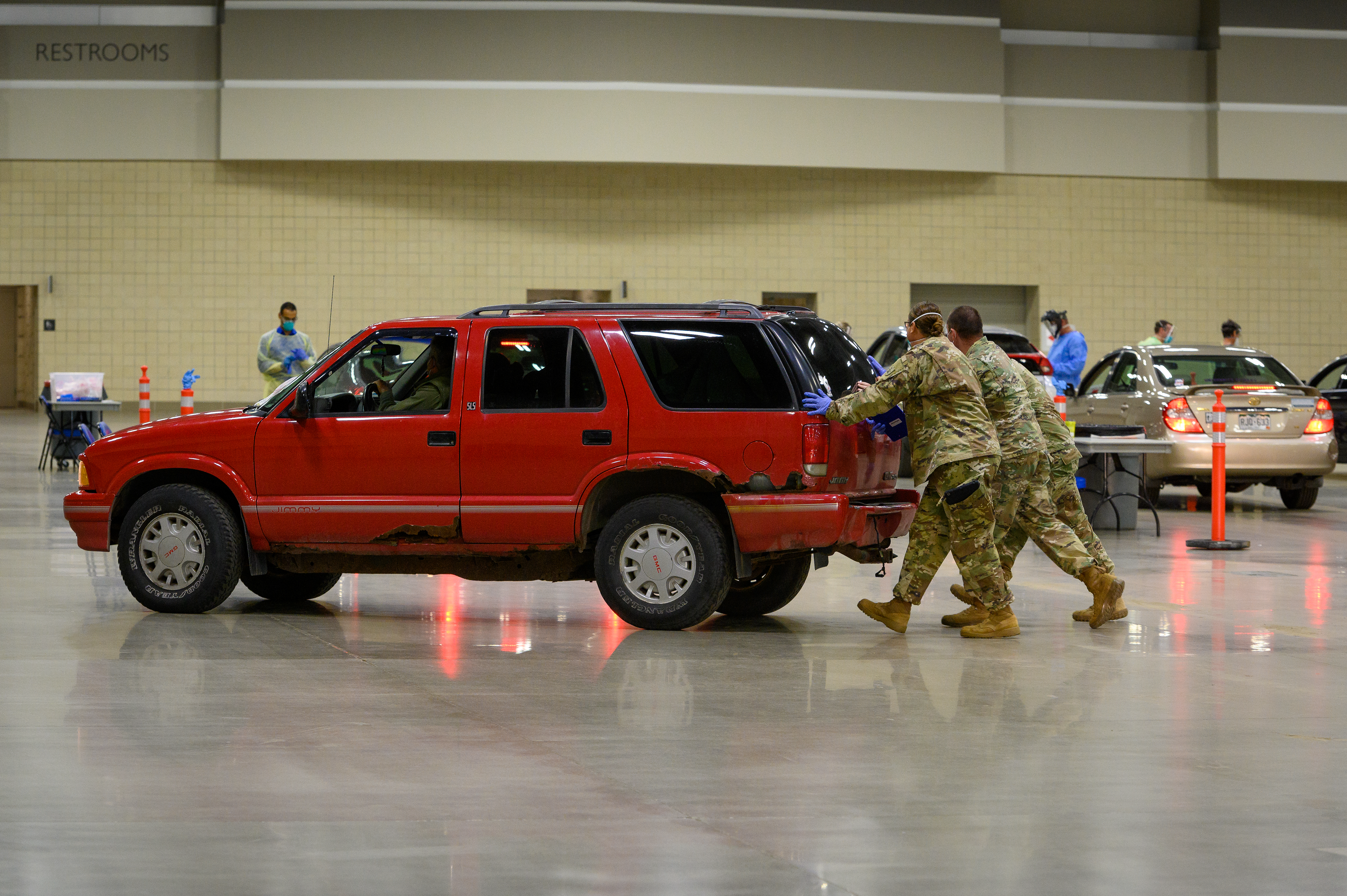 The N.D. National supported COVID-19 mobile testing at the Bismarck Event Center in Bismarck, N.D. on Oct. 28, 2020. This mission is a part of the Guard’s continued support to the state and local communities during the ongoing pandemic. (U.S. Army National Guard story and photos by Sgt. 1st Class Brett Miller, 116th Public Affairs Detachment)