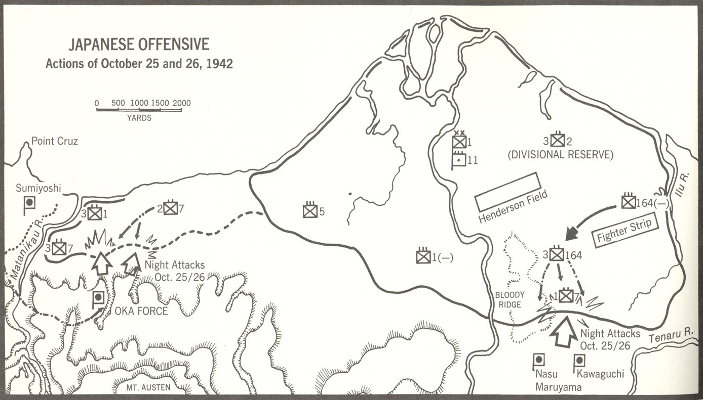Smaller photo: Soldiers near the same area during the battle in 1942.