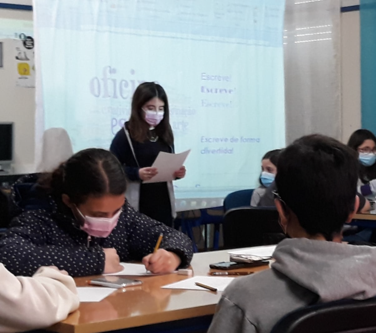 Em 2021-22, o mês de fevereiro foi dedicado às Oficinas de Escrita Criativa. Participaram, na Biblioteca Escolar, todas as 9 turmas do 2º ciclo. A oficina, foi criada a partir de uma das ideias de Margarida Fonseca Santos, explanada no seu livro Desafios em 77 palavras. Neste 1º desafio os alunos foram convidados a descobrir, em grupo, os anagramas da palavra "CASO", a partir das respetivas letras que lhes foram facultadas logo à partida. Descobertas as 8 palavras, os participantes entraram, desta feita individualmente, na 2ª parte do desafio: Escrever um texto com 77 palavras, colocando essas 8 lá dentro. Finalmente foram convidados a apresentar os textos produzidos. Mais do que o produto final, com esta atividade pretendemos valorizar sobretudo o processo, considerando que é ele que vai aperfeiçoar a capacidade de os alunos escreverem, com crescente facilidade, qualquer tipo de texto que lhes seja proposto.