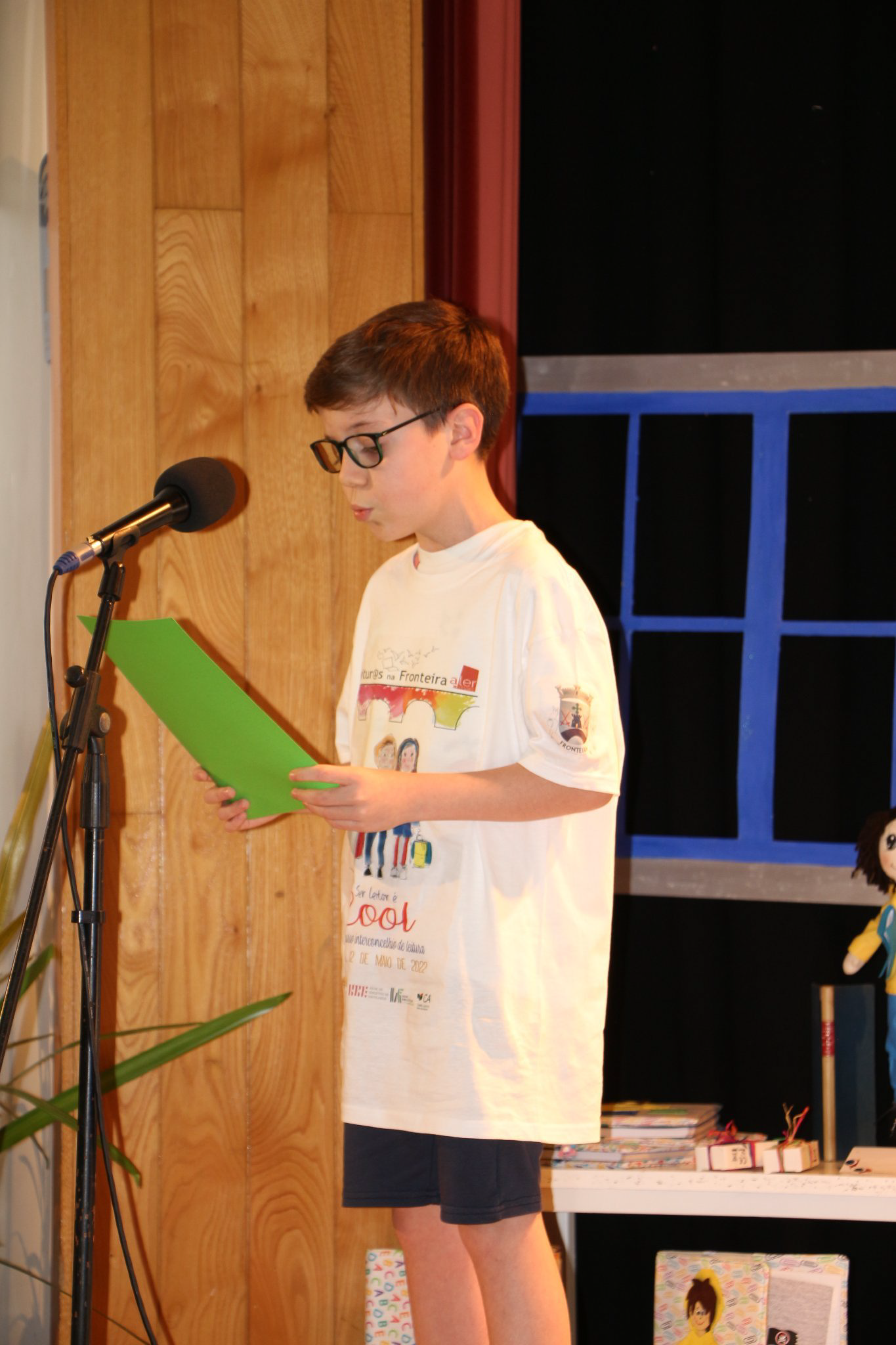 No ano letivo de 2021-22, não ganhámos prémios nem menções honrosas na fase final, mas os nossos representantes do 3º e 4º anos Francisco Alves (3ºano), Inês Mendes (4ºano), Helena Agostinho (5ºano) e Miguel Pereira (6ºano), deram o seu melhor, lendo, com expressividade. os poemas que lhes couberam em sorte, em Fronteira, no dia 12 de maio. Na fase de agrupamento foram 36 os alunos participantes.