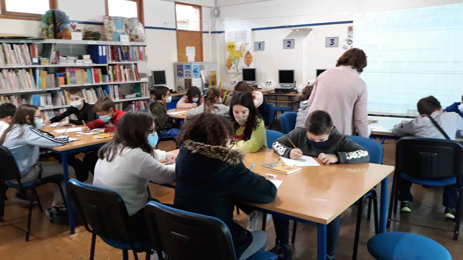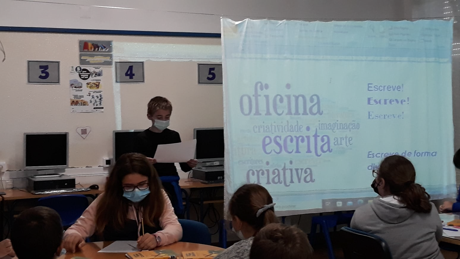 Em 2021-22, o mês de fevereiro foi dedicado às Oficinas de Escrita Criativa. Participaram, na Biblioteca Escolar, todas as 9 turmas do 2º ciclo. A oficina, foi criada a partir de uma das ideias de Margarida Fonseca Santos, explanada no seu livro Desafios em 77 palavras. Neste 1º desafio os alunos foram convidados a descobrir, em grupo, os anagramas da palavra "CASO", a partir das respetivas letras que lhes foram facultadas logo à partida. Descobertas as 8 palavras, os participantes entraram, desta feita individualmente, na 2ª parte do desafio: Escrever um texto com 77 palavras, colocando essas 8 lá dentro. Finalmente foram convidados a apresentar os textos produzidos. Mais do que o produto final, com esta atividade pretendemos valorizar sobretudo o processo, considerando que é ele que vai aperfeiçoar a capacidade de os alunos escreverem, com crescente facilidade, qualquer tipo de texto que lhes seja proposto.