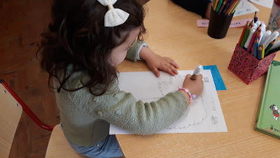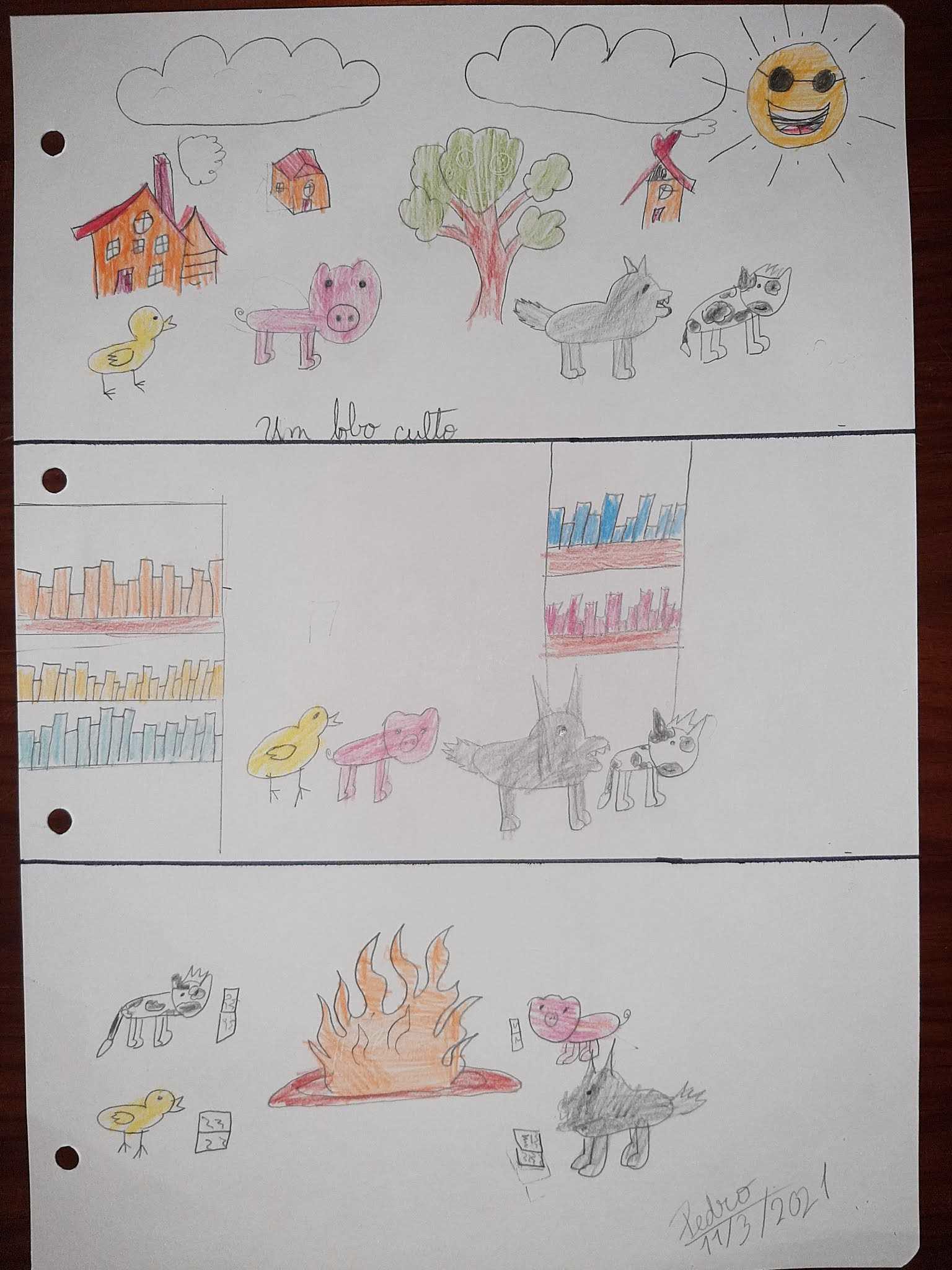 A mãe do aluno Pedro Guedes, da turma A do 2º ano da EB dos Assentos, leu, em conjunto com o seu filho, a obra "Um lobo culto" de Becky Bloom e Pascal Biet. O Pedro reproduziu a história através de bonitas ilustrações relativas aos acontecimentos principais.