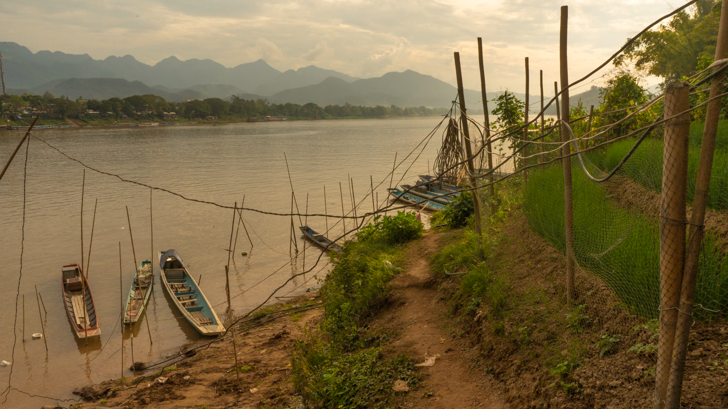 The town is mostly situated within a peninsula with the Mekong River on the right, and the Nam Khan River flowing to the left.