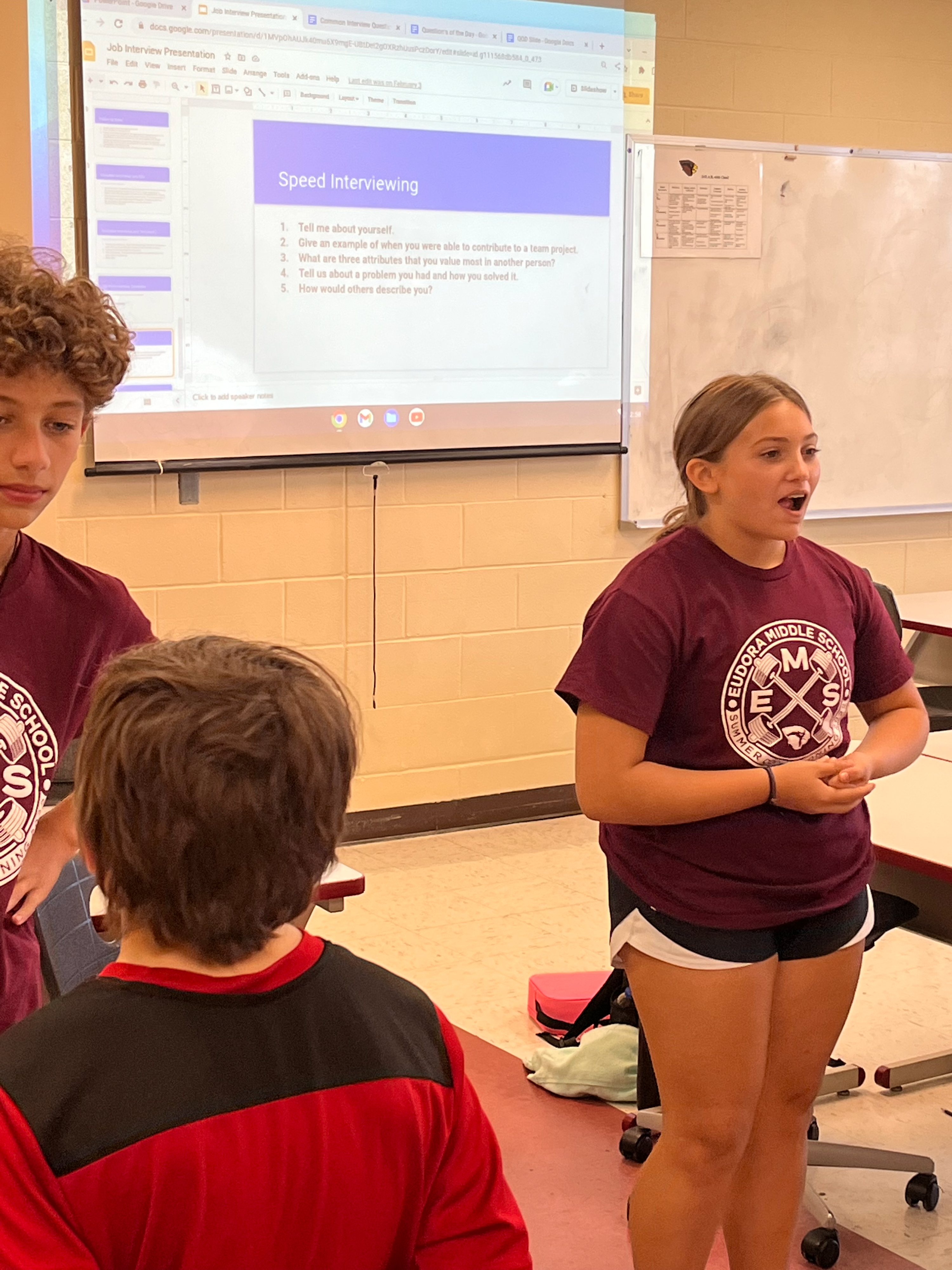 The 8th graders have been practicing asking and responding to 20 questions in Spanish.