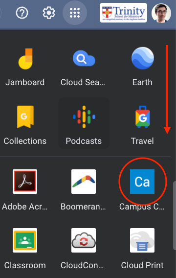 Después de hacer click en ese ícono, debe desplazarse hacia abajo en el menú, hasta encontrar el ícono de Campus Café