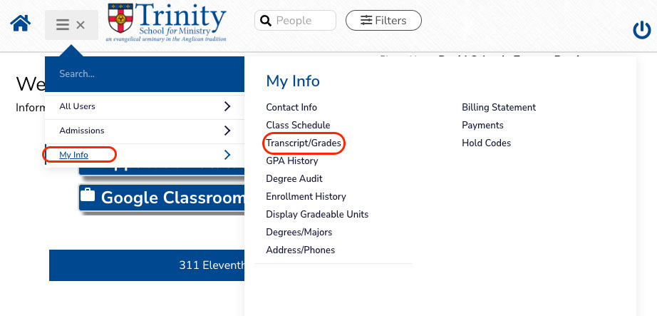 Paso 3 : Haga click en My Info y luego en Transcripts/Grades