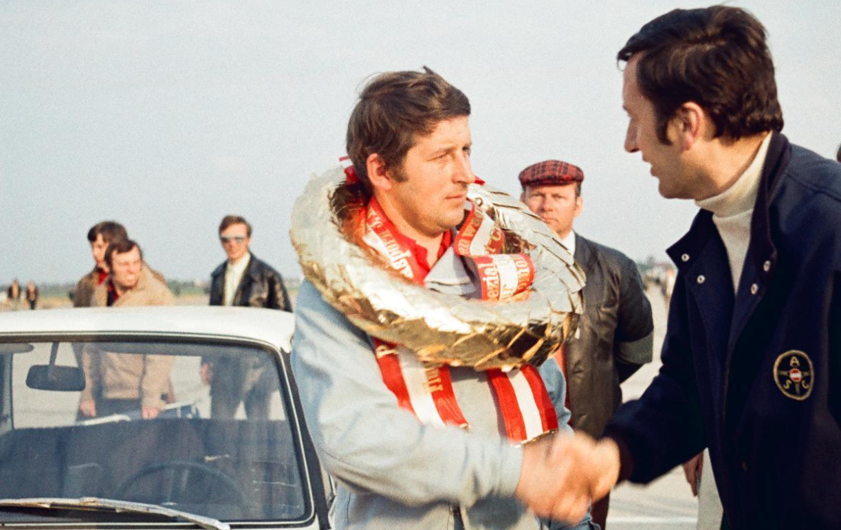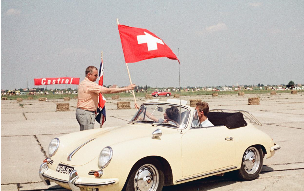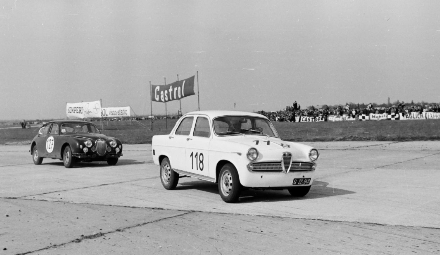 - Der Schauspieler Dr. Gunther Phillip fuhr in den 60er Jahren Autorennen u.a. auch hier in Aspern und siegte 1961, 1963 und 1965 jeweils in der Gran Tourismo-Klasse. Foto: Arthur Fenzlau / Technisches Museum Wien.