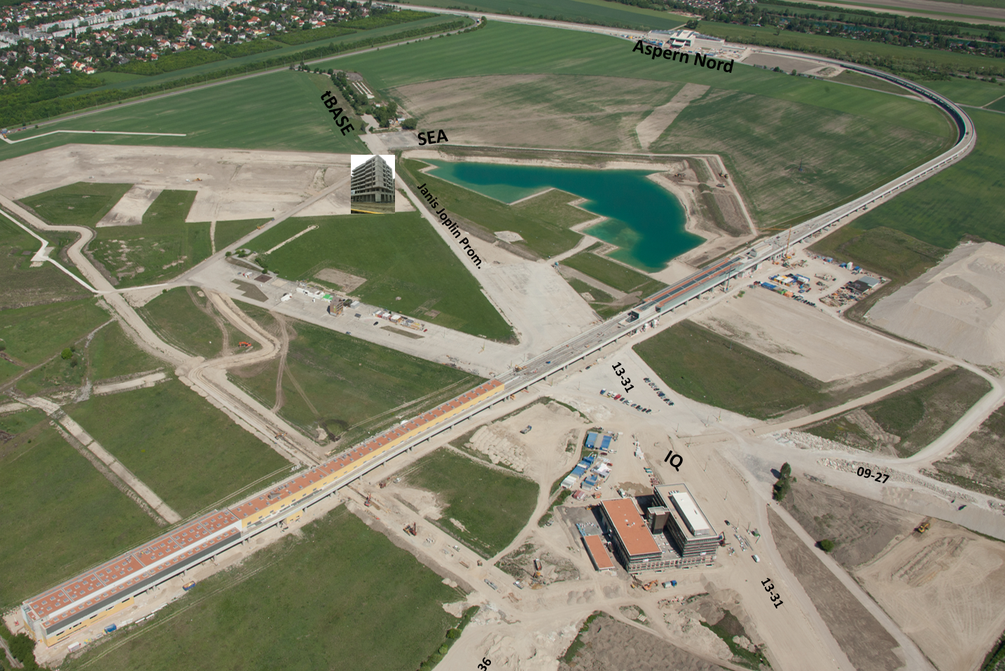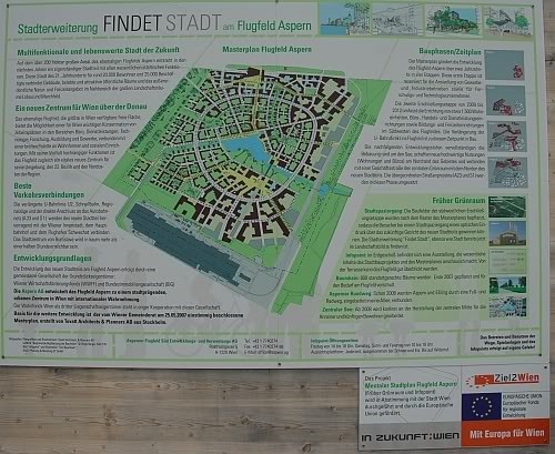 - Wo einst aviatische Pionierleistungen erbracht wurden, werden bald Menschen wohnen, arbeiten und schwimmen. Im Mai 2005 erfolgte die Ausschreibung eine entsprechenden Ideenwettbewerbes, und es wurde bekannt gegeben, dass in dem neuen Stadteil nicht 5.000, sondern 8.000 Wohnungen, 7.500 produzierende Arbeitsplätze und 18.000 Bürojobs geschaffen werden sollen. In den Jahren 2007 und 2008 fanden noch einmal Motorsportveranstaltungen als Reverenz an die legendären Asperner Flugplatzrennen statt, und, obwohl der ARBÖ das Gelände bereits geräumt hat, die ersten Baumaschinen bereits aufgefahren sind, wird daran gedacht, 2009 noch einmal ein "Asperner Flugplatzrennen" zu veranstalten.