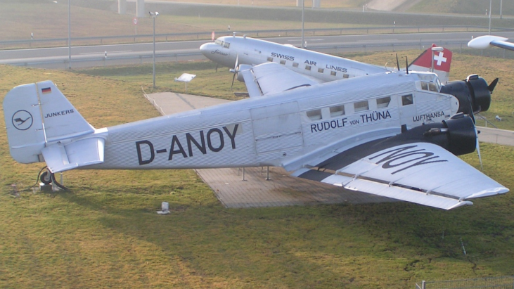 - Am 10. September 1987 führte die Junkers Ju 52/3m der Lufthansa einen Sonderflug mit Passagieren an Bord, zwischen LOWA (Flughafen Wien Aspern) und LOWW (Flughafen Wien Schwechat) durch. Anlass dafür war einerseits das Jubiläum „75 Jahre Flughafen Wien“, andererseits die Einweihung des Gedenksteins, welcher neben der alten Zufahrtsstraße aufgestellt wurde. Neben der legendären „Tante Ju“, fanden sich damals auch jede Menge Flugzeuge der allgemeinen Luftfahrt mit Ehrengästen in Aspern ein.