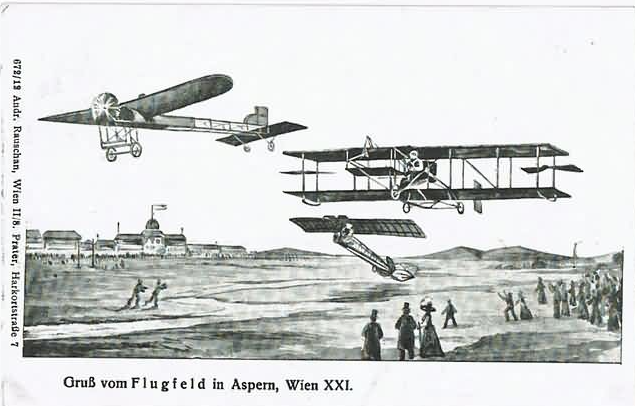 - 1914: Nach und nach wurde Aspern gewissermaßen zum "Nabel der Fliegerei" Europas, was jedoch 1914 ein jähes Ende fand, als während des dritten internationalen Flugmeetings die Nachricht von der Ermordung des österreichischen Thronfolgers in Sarajewo in Wien eintraf.