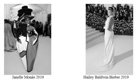 Monáe’s Gala attire, although outrageous, is just EYEronic enough to fit the theme of the night and allow the audience to visualize what the exhibit may include. On the other hand, Bieber’s elegant Alexander Wang does not match the theme and does not express the collection of the year adequately, therefore not allowing the audience to gain any knowledge about the Camp Fashion aesthetic.