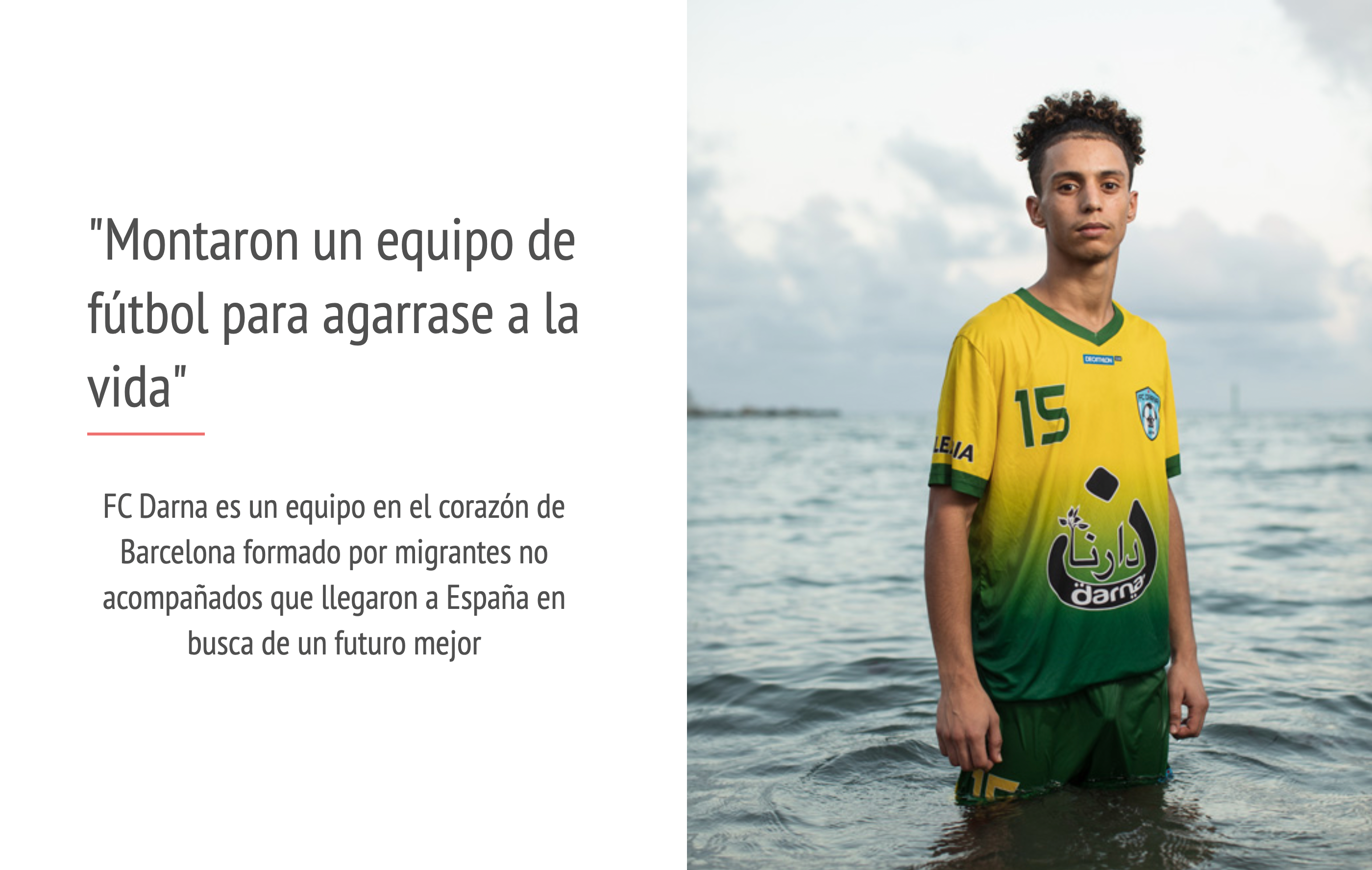 El objetivo del proyecto Goals for Change ganador de la beca Art for Change la Fundación La Caixa es proporcionar herramientas artísticas audiovisuales a jóvenes que han atravesado procesos migratorios diversos para que a través del proyecto creativo puedan expresar y visibilizar sus retos, sus logros, sus temores y de esta forma mejoren su autoestima. Gracias a la formación que han recibido durante un año en fotografía y vídeo los migrantes del colectivo FC Darna de Barcelona, un equipo de fútbol 11 creado por jóvenes migrantes no acompañados que llegaron a España en busca de un futuro, han construido una nueva narrativa que les ayuda a desafiar los estereotipos negativos y a promover la lucha contra el racismo a través del fútbol.