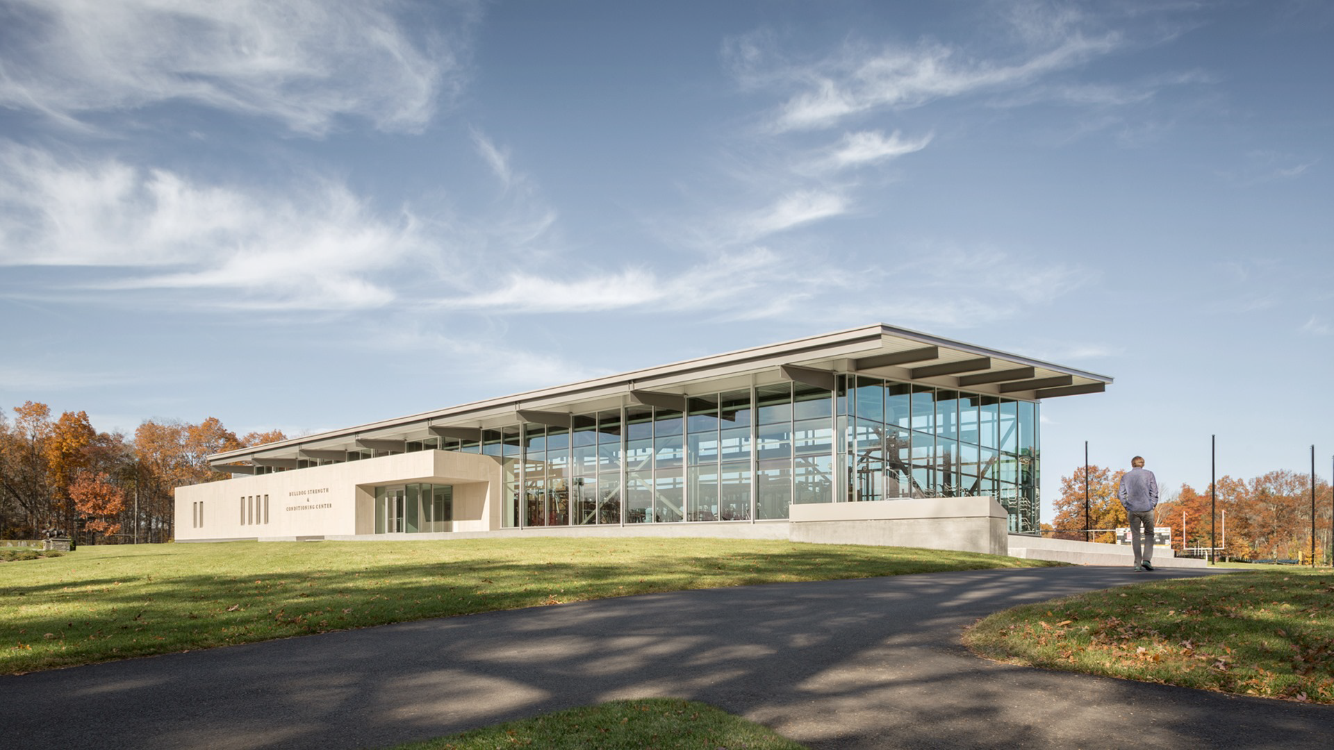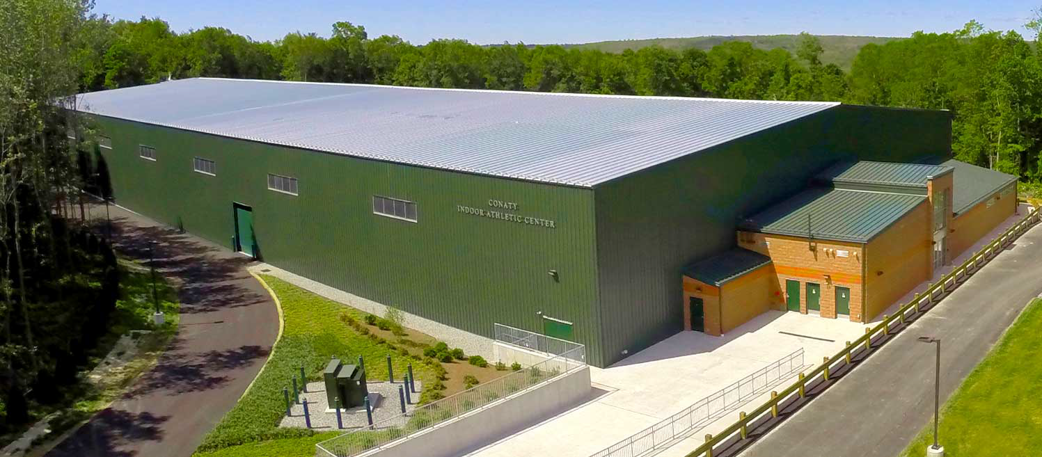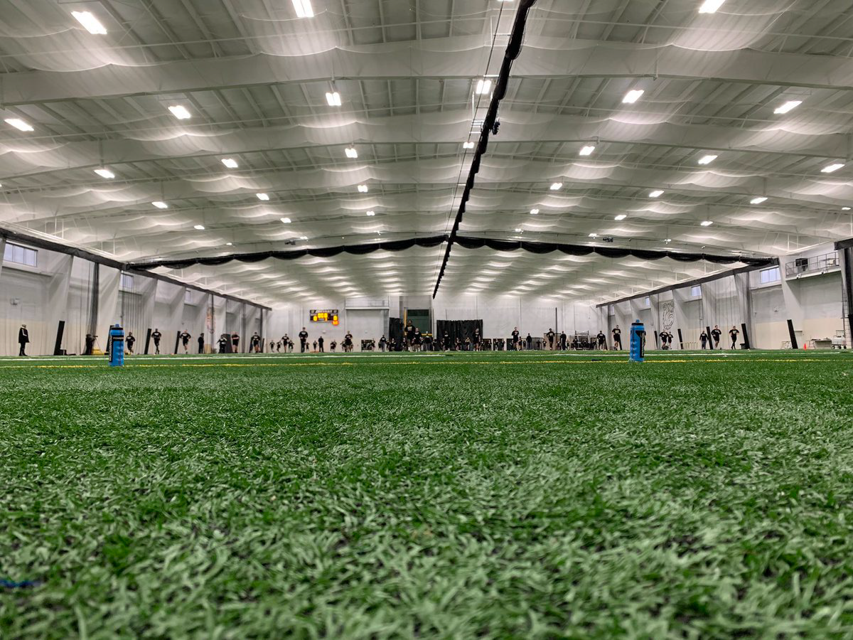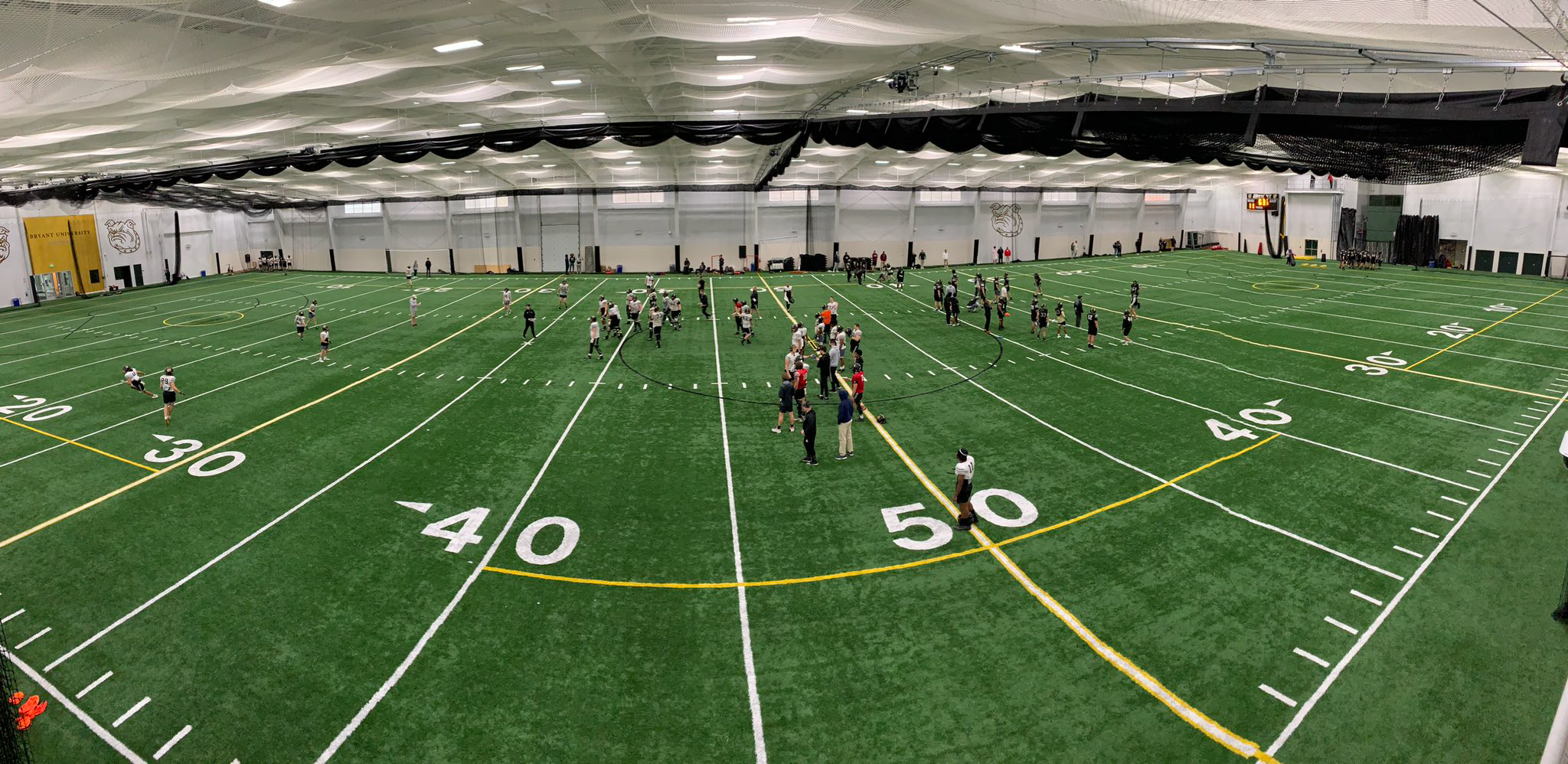 The Indoor Athletic Center is thirty-eight-feet tall at its peak, with a 120-yard football field (including end zones), viewing platforms overlooking the field.