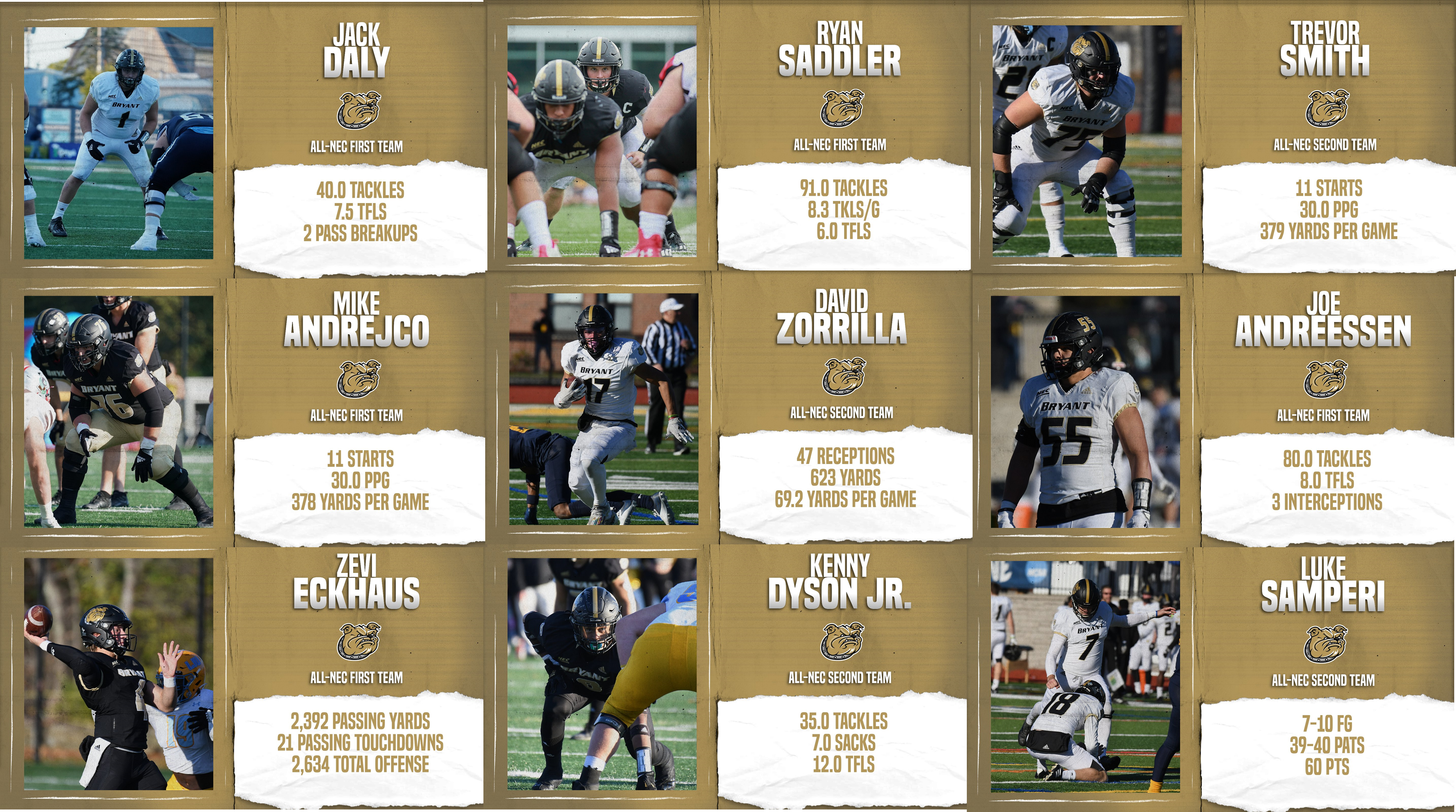 The Bryant University Football Team has produced 39All-Conference selections, four All-Americans, one Big South Special Teams Player of the Year, one Big South- OVC Offensive Player of the Year, one NEC Defensive Rookie of the Year and one NEC Offensive Rookie of the Year during Coach Merritt's time as the Bulldogs head coach.