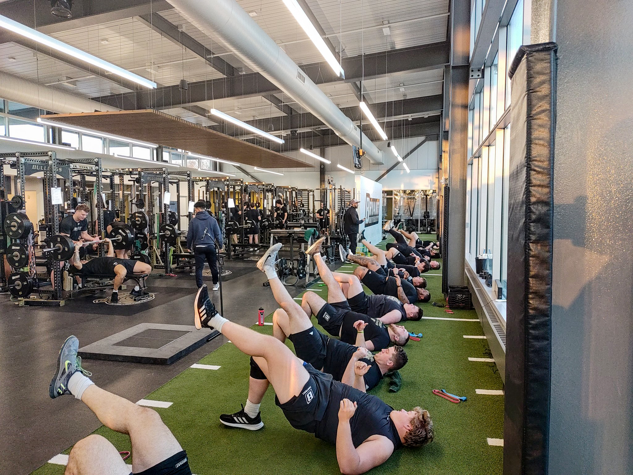 The facility features 24 weight platforms, allowing the Strength & Conditioning staff to move teams through workouts as a unit.