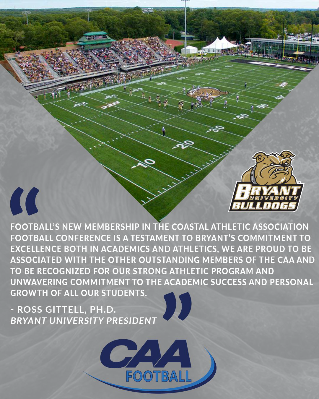 The Bulldogs compete in the NCAA Division 1 Football Championship Subdivision (FCS) and are members of the CAA Conference. The Bryant University Football program is led by our head coach Chris Merritt.