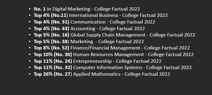 A nationally ranked academic university in the heart of New England, Bryant University's combination of academics, top ranked return on investment and elite student outcomes separate us from other schools.