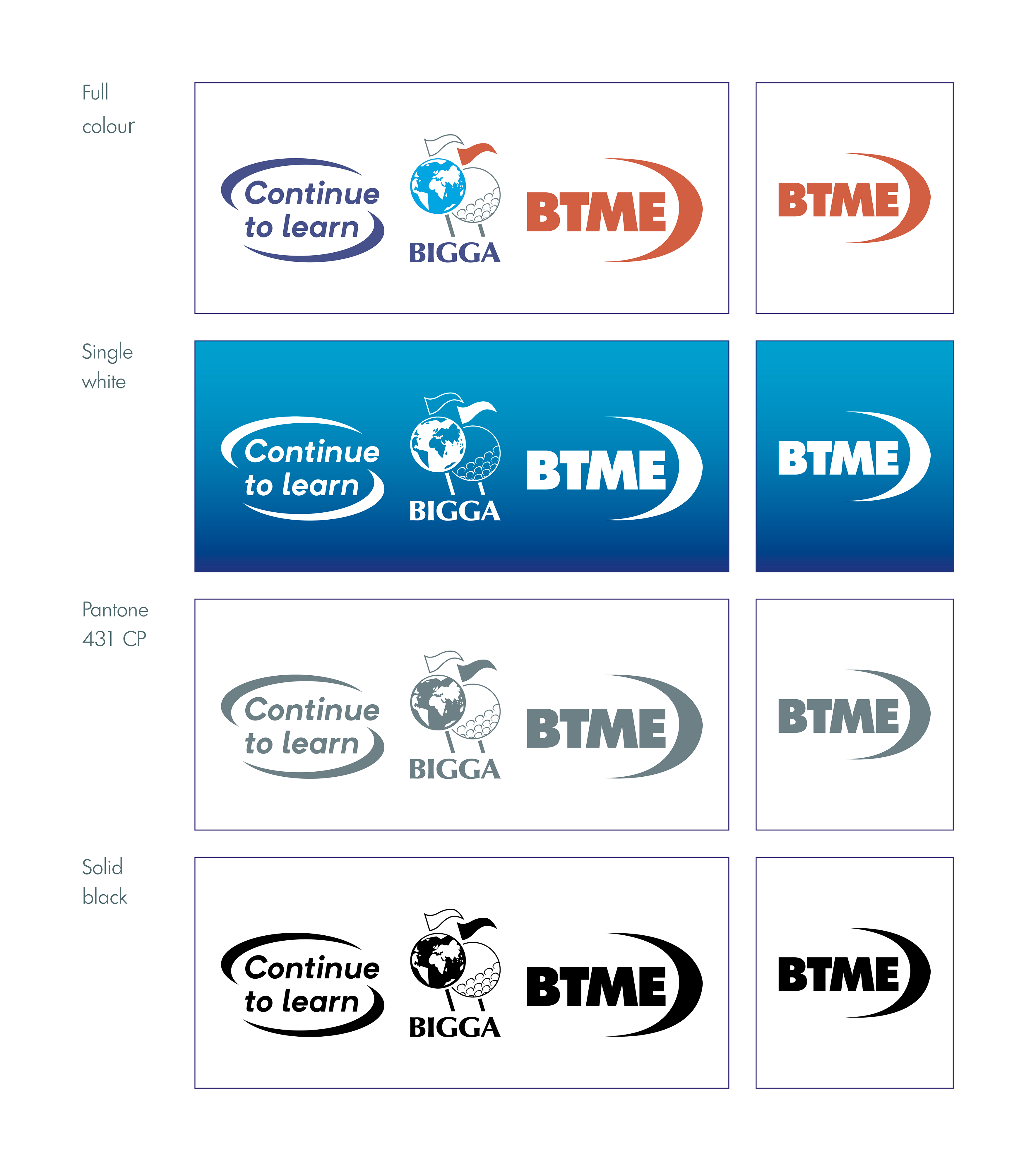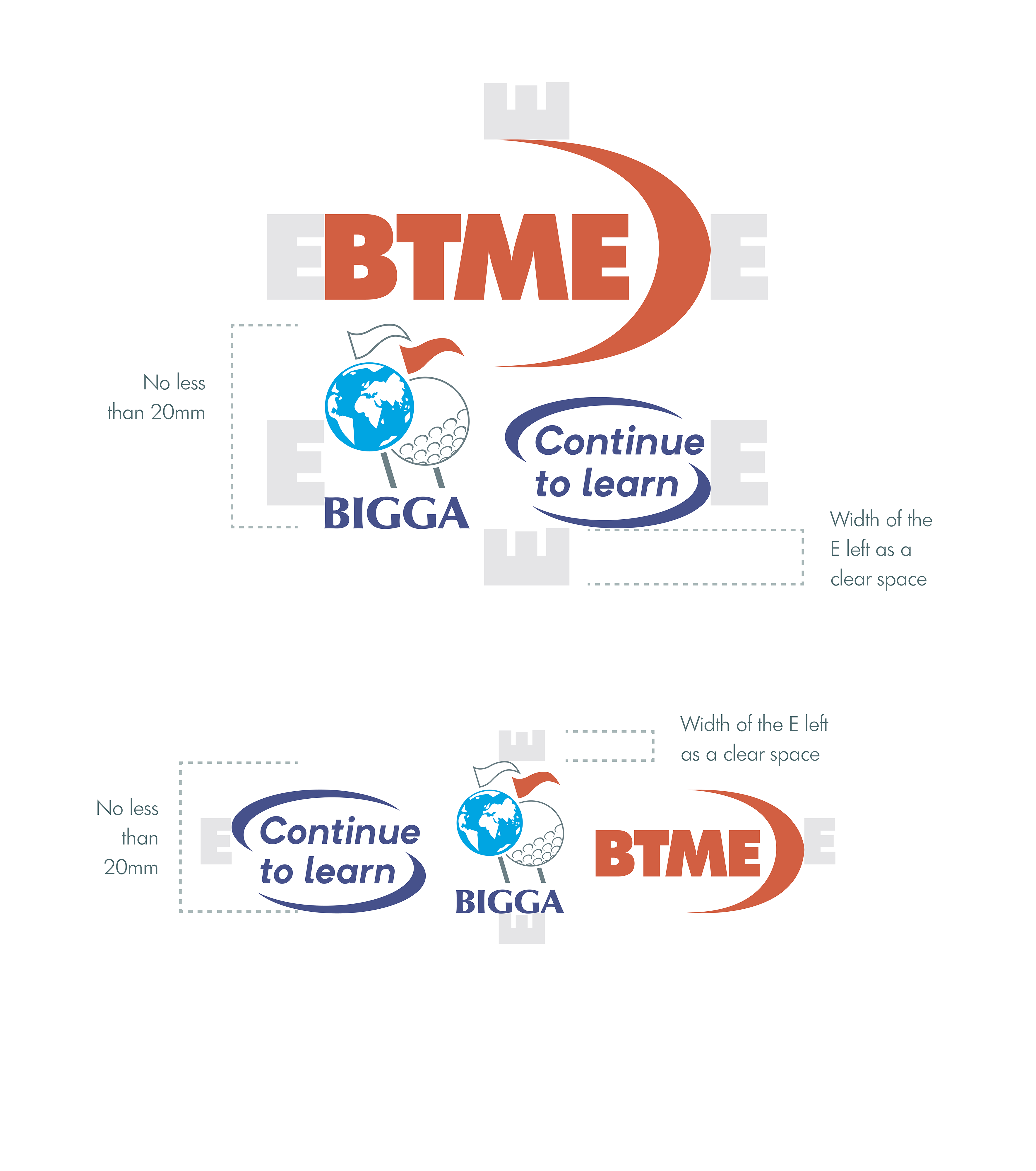In certain circumstances a combination of the BIGGA, BTME and Continue to Learn logos or simply BTME and BIGGA may be required.