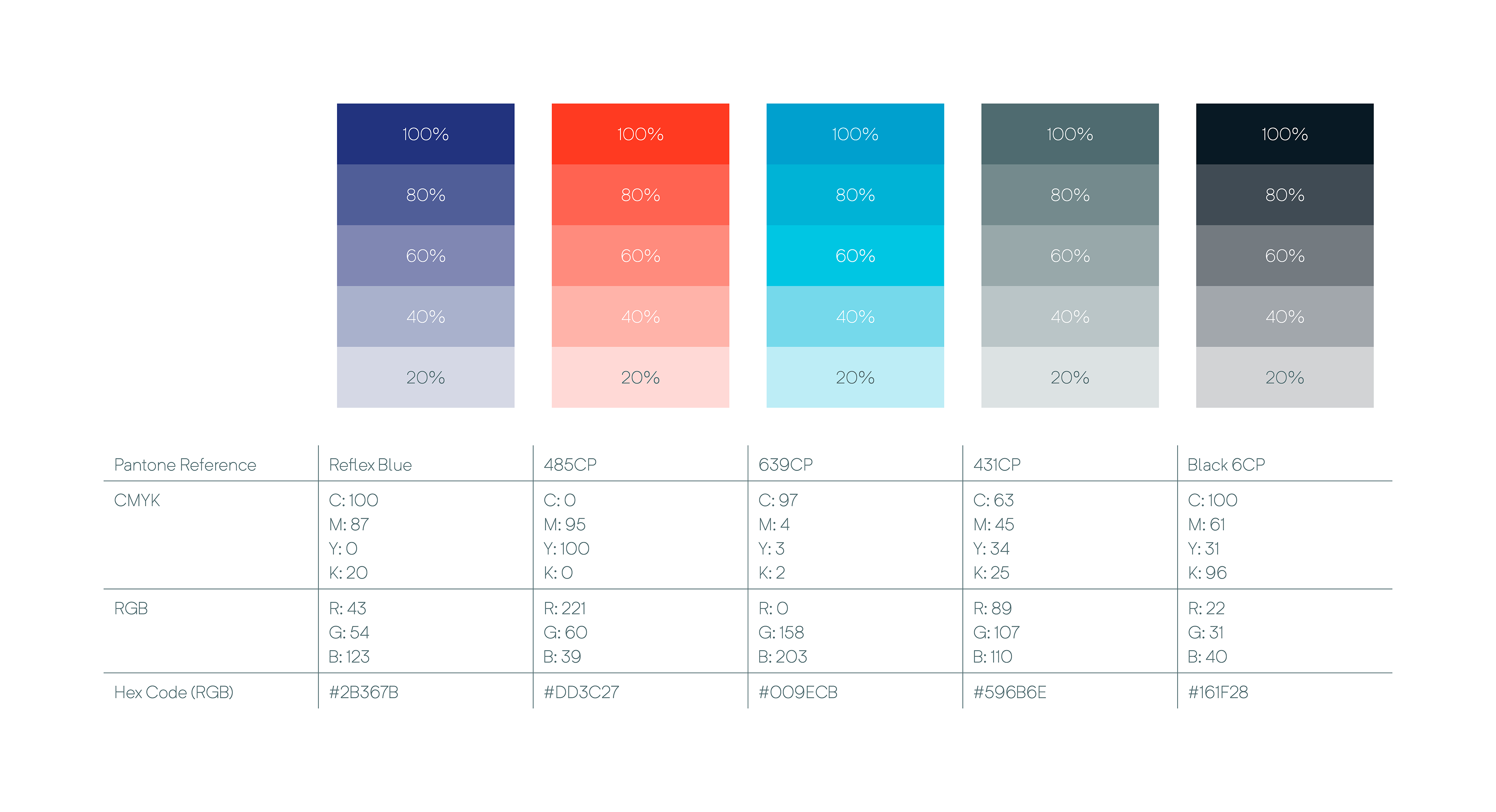 Grey versions should only appear on white backgrounds. The grey version is a secondary set up rather than for primary usage.