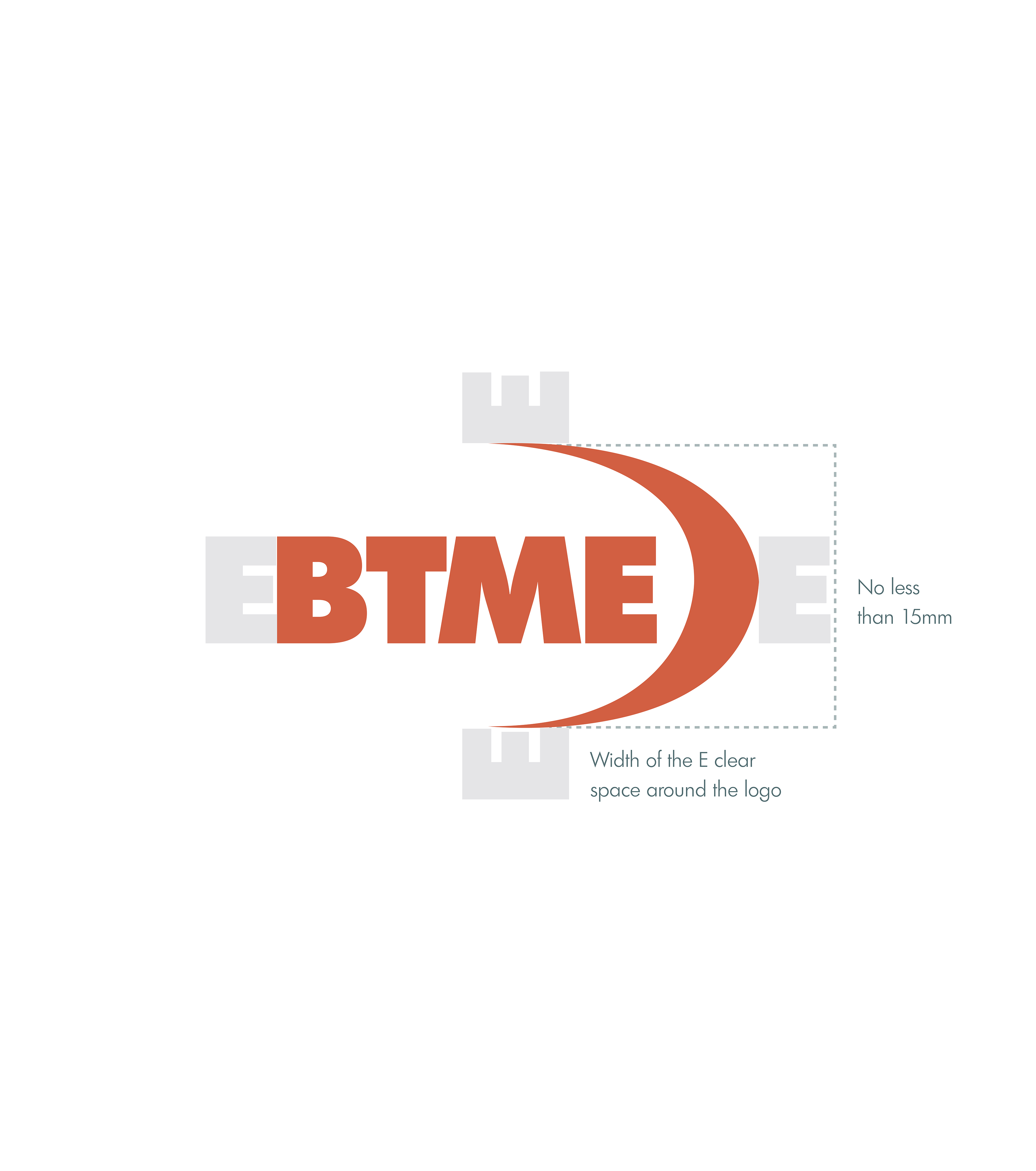 When using the lockups a clear space equivalent to width of the E in BTME should be left around the branding. The files available have this built into them to ensure consistent application across all projects.