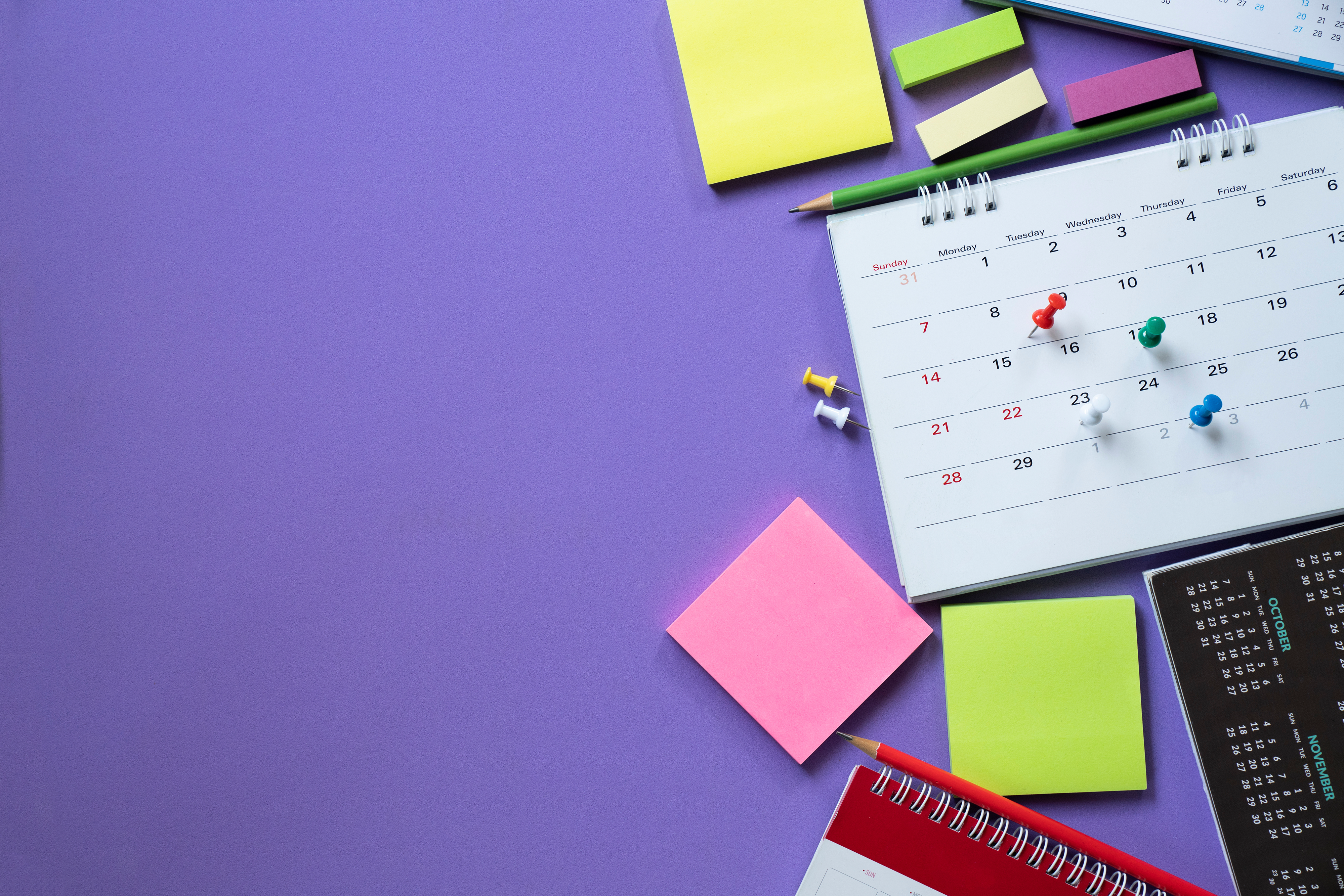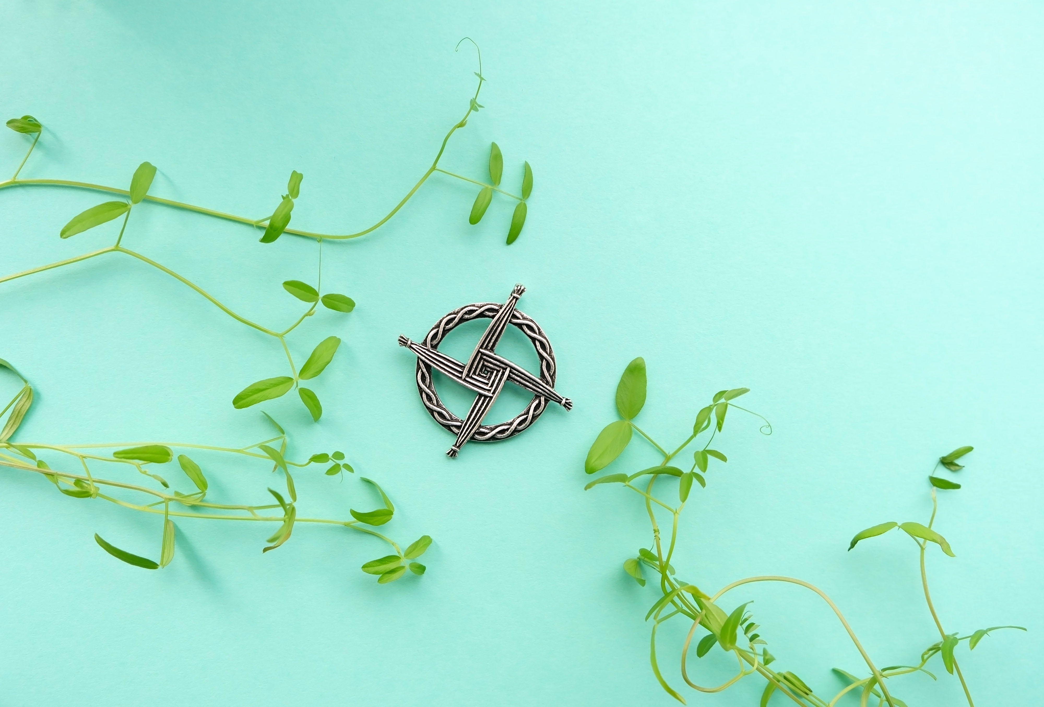 Created with images by tatomm - "close up of calendar on the purple background, planning for business meeting or travel planning concept" • Ju_see - "ireland Brigid's cross amulet and leaves close up on abstract green background.,Brigid's cross - symbol of Imbolc sabbat.,Wiccan tradition for blessed, protection.,spring and winter pagan ritual." • HN Works - "Clover leaves form a frame on a white background"
