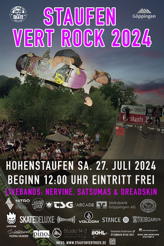 Am Samstag 27.07.2024 findet wieder das Staufen Open Air mit Halfpipe Skate Contest in Göppingen Hohenstaufen statt. Dieses Jahr haben wir ein Mega Setup am Start. Das Open Air ist grundsätzlich kostenlos. Mit einer Spende (give what you want) kannst du unseren Verein und das Konzert unterstützen und zeigen, was Dir so eine coole Veranstaltung Wert ist. Auch dieses Jahr sind unsere Getränke und Essenspreise extrem günstig. Daher möchten wir kein Fremdbier/ Alkohol bei uns haben. Danke für Euer Verständnis.