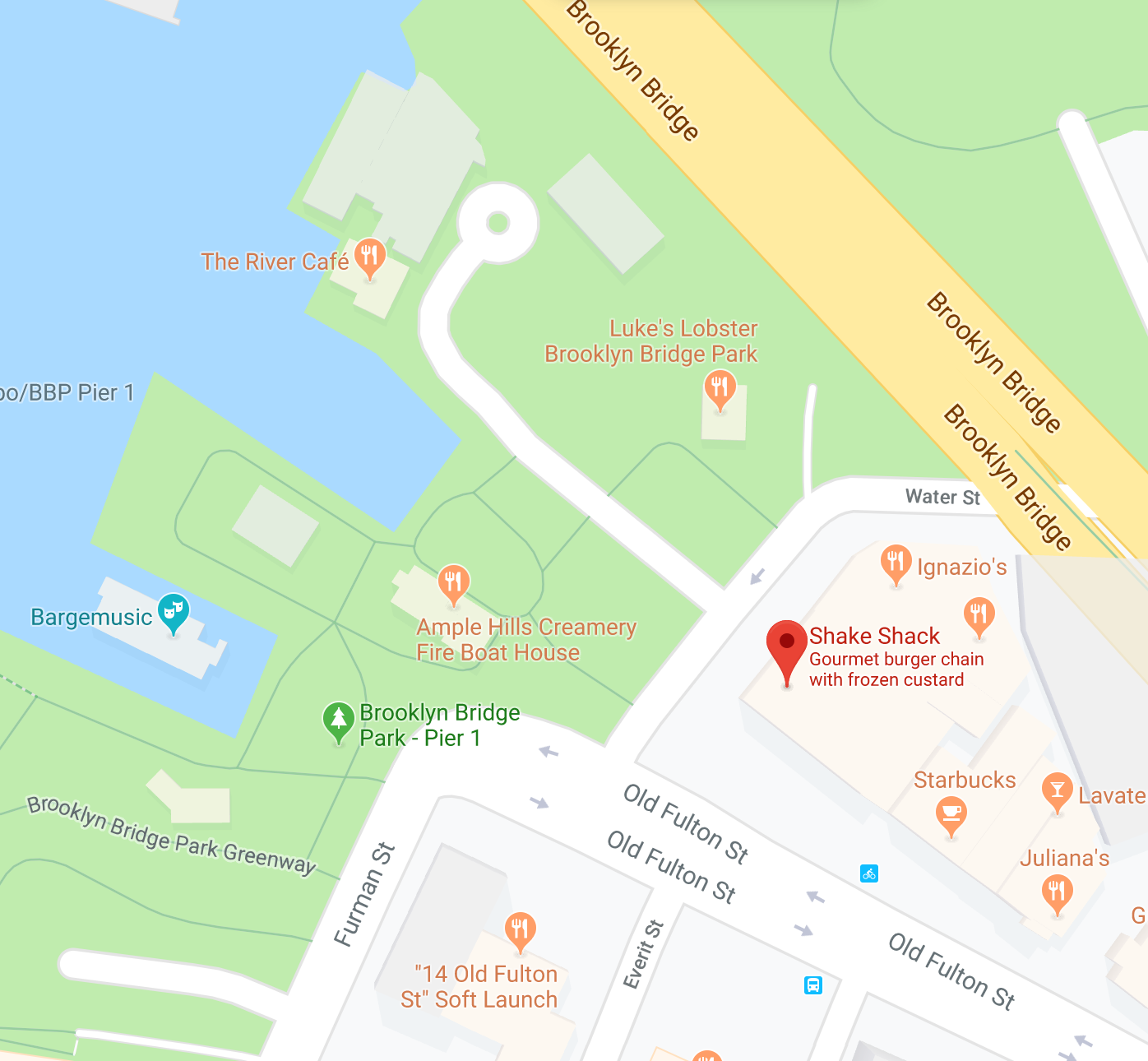 Meeting Location: Our meeting spot is at the SHAKE SHACK ( Old Fulton Street, Brooklyn, NY ) which is the right at the entrance of Brooklyn Bridge Park and Pier 1. We will be infront.