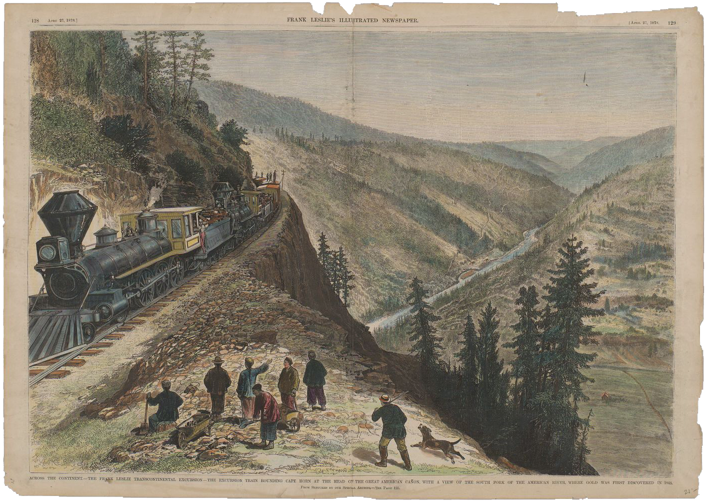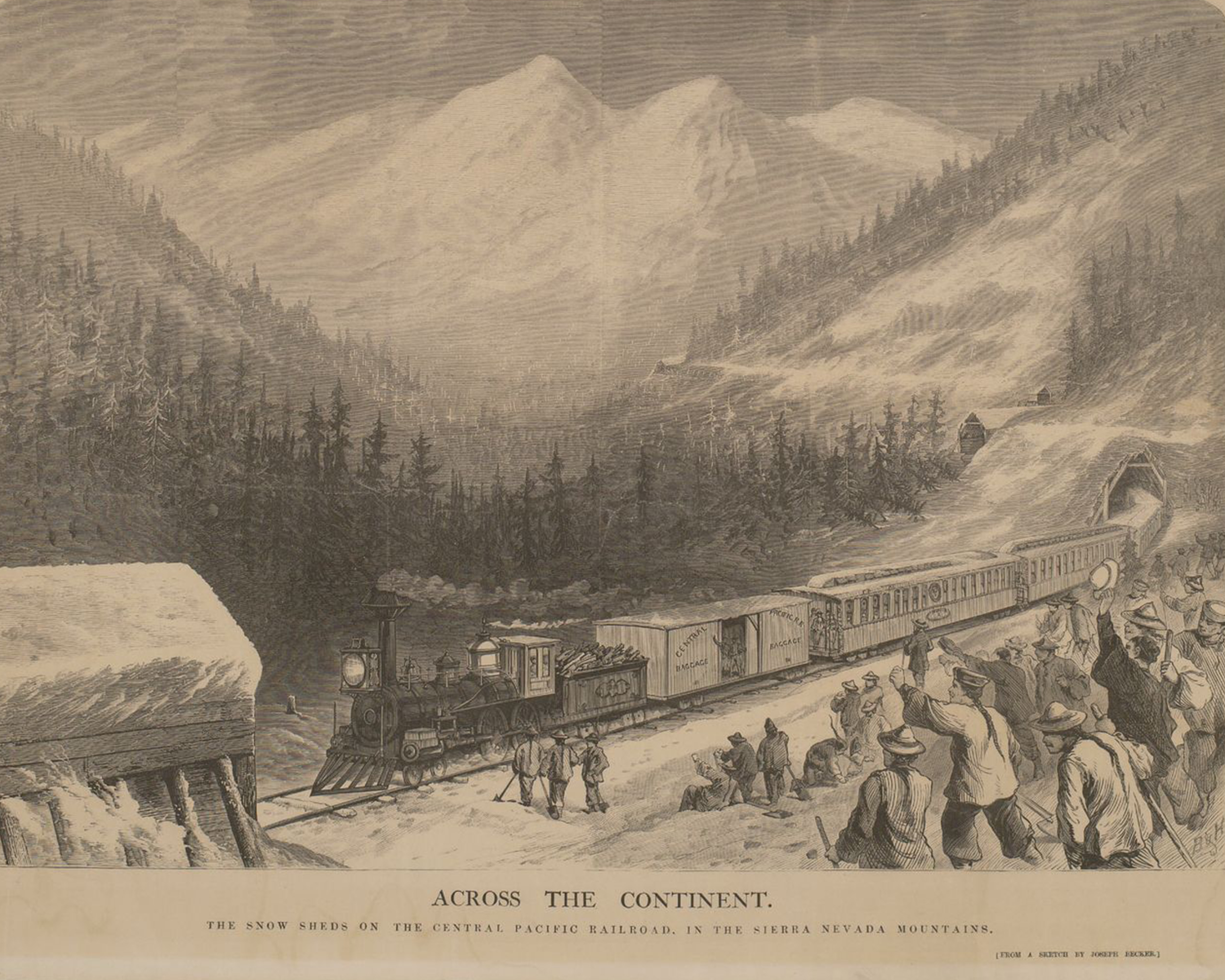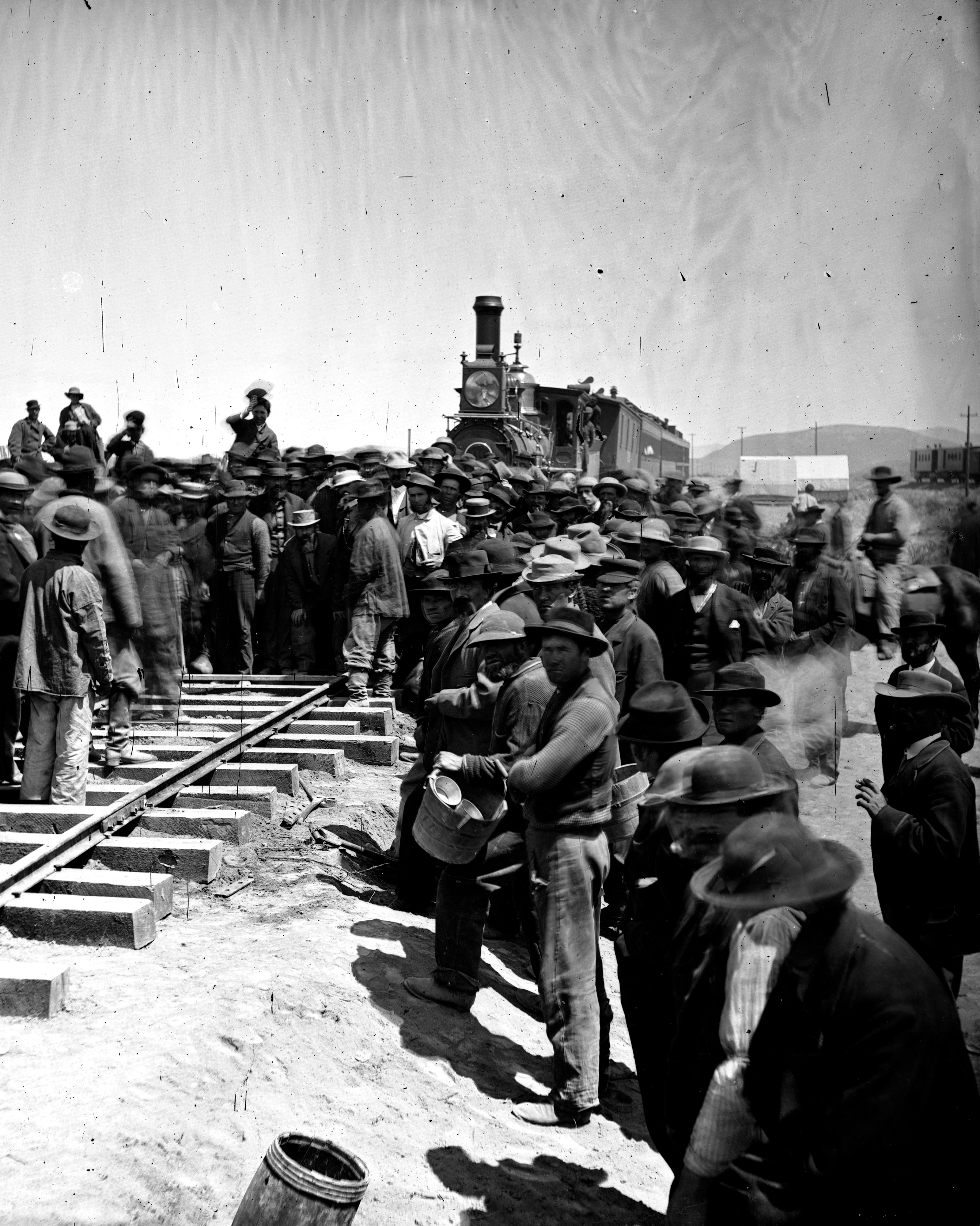 Los trabajadores ferroviarios chinos fueron vitales para la finalización del Ferrocarril Transcontinental. El Ferrocarril Pacífico Central (CPRR) contrató a más de 10,000 hombres chinos para construir un ferrocarril sobre el difícil terreno de Sierra Nevada. En 1868, más del 90% de la fuerza laboral de la CPRR estaba formada por inmigrantes chinos.