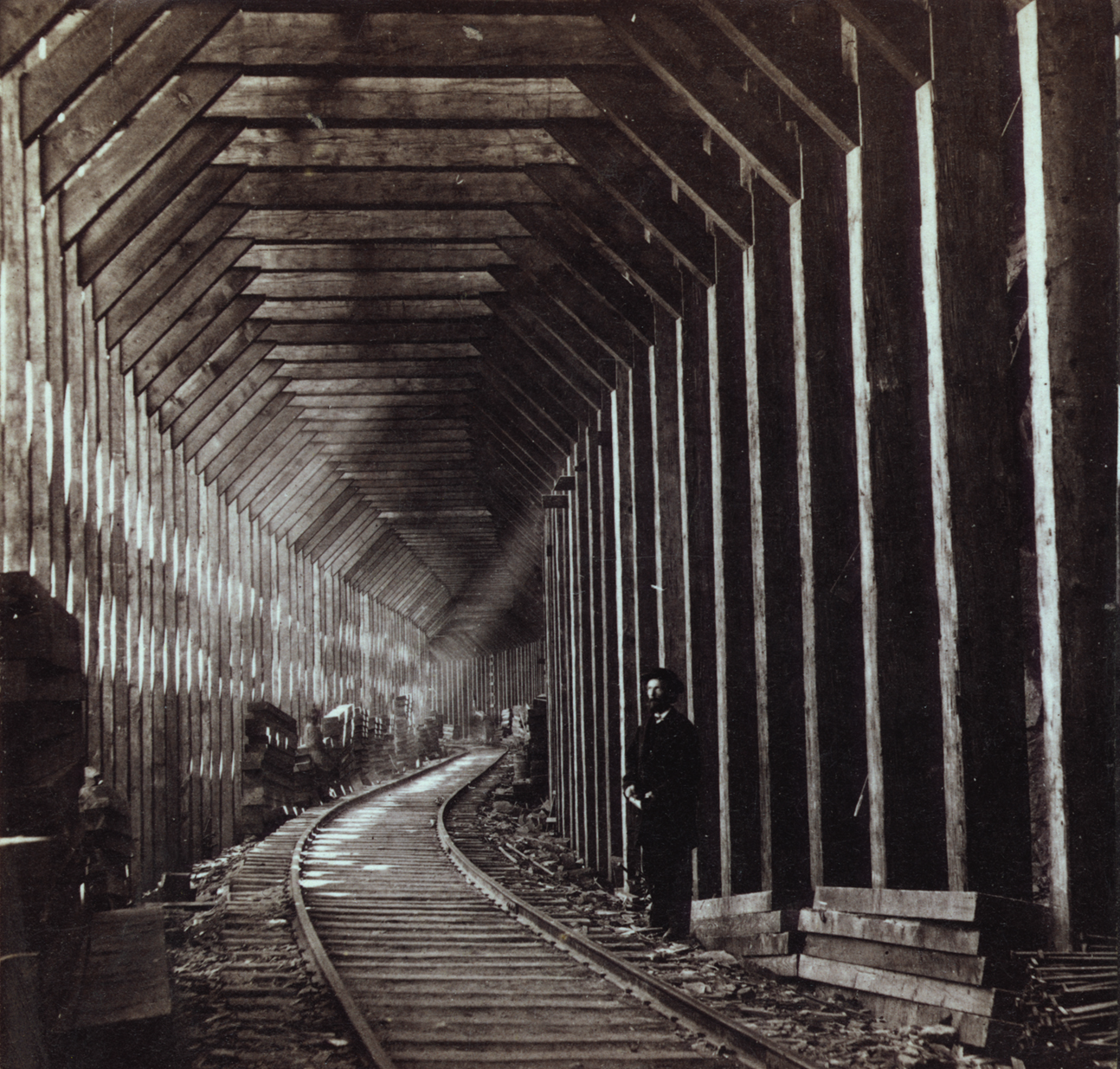 Los trabajadores chinos construyeron 15 túneles en las montañas de la Sierra. Siete de ellos atravesaron granito macizo. Con 1,658 pies de largo, el túnel Summit era el más largo y resistente. ¿Cómo lo hicieron? Dos equipos trabajaron uno hacia el otro desde ambos extremos. Al mismo tiempo, los trabajadores cavaron un pozo desde arriba hasta el centro del túnel. Luego cavaron hacia afuera desde el medio.