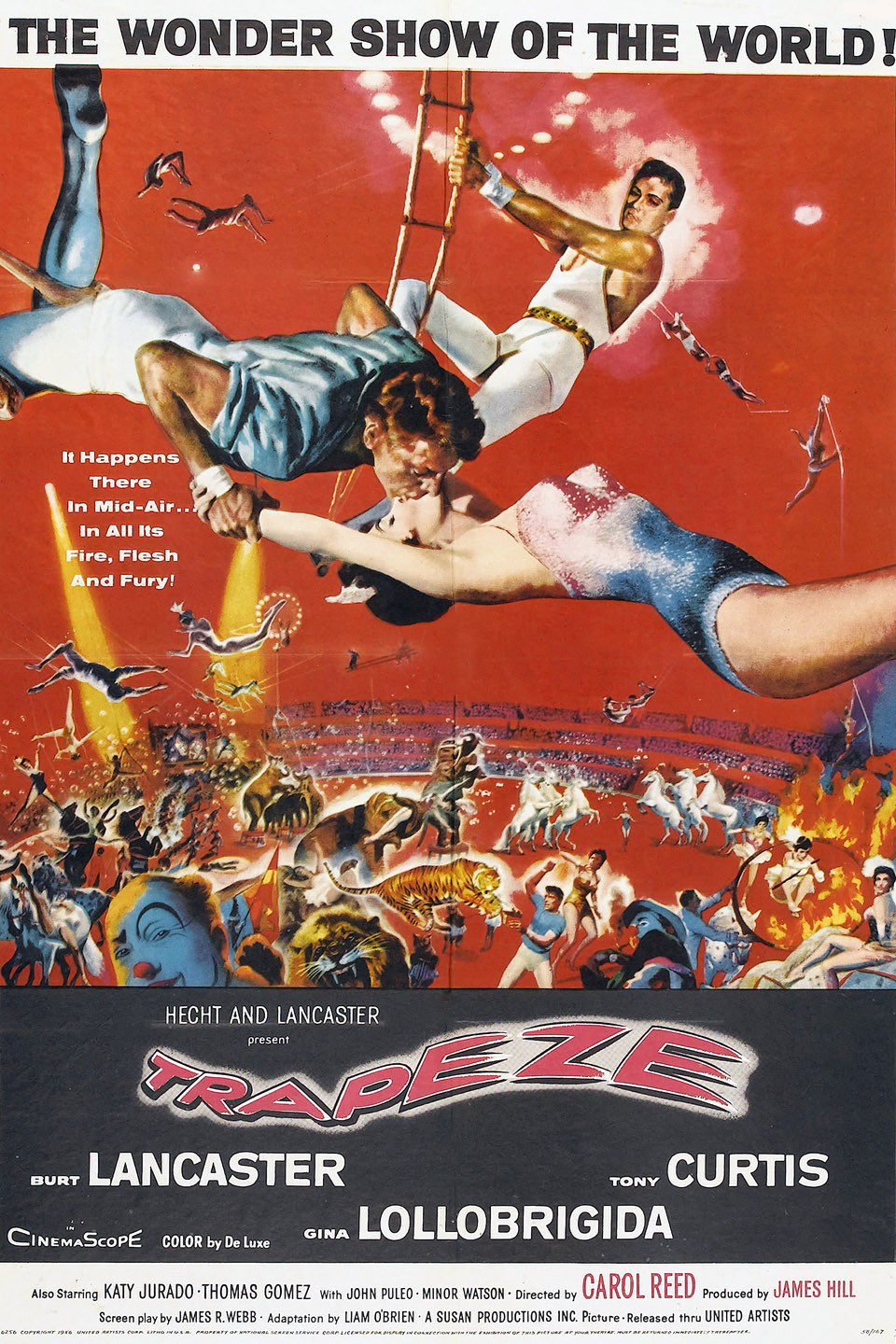 In Paris, at the famous Cirque d’Hiver, film director Carol Reed was shooting the film Trapeze, starring Gina Lollibrigida, Tony Curtis and Burt Lancaster (who had been an acrobat in the circus before becoming a film star). Avedon was invited onto the set.