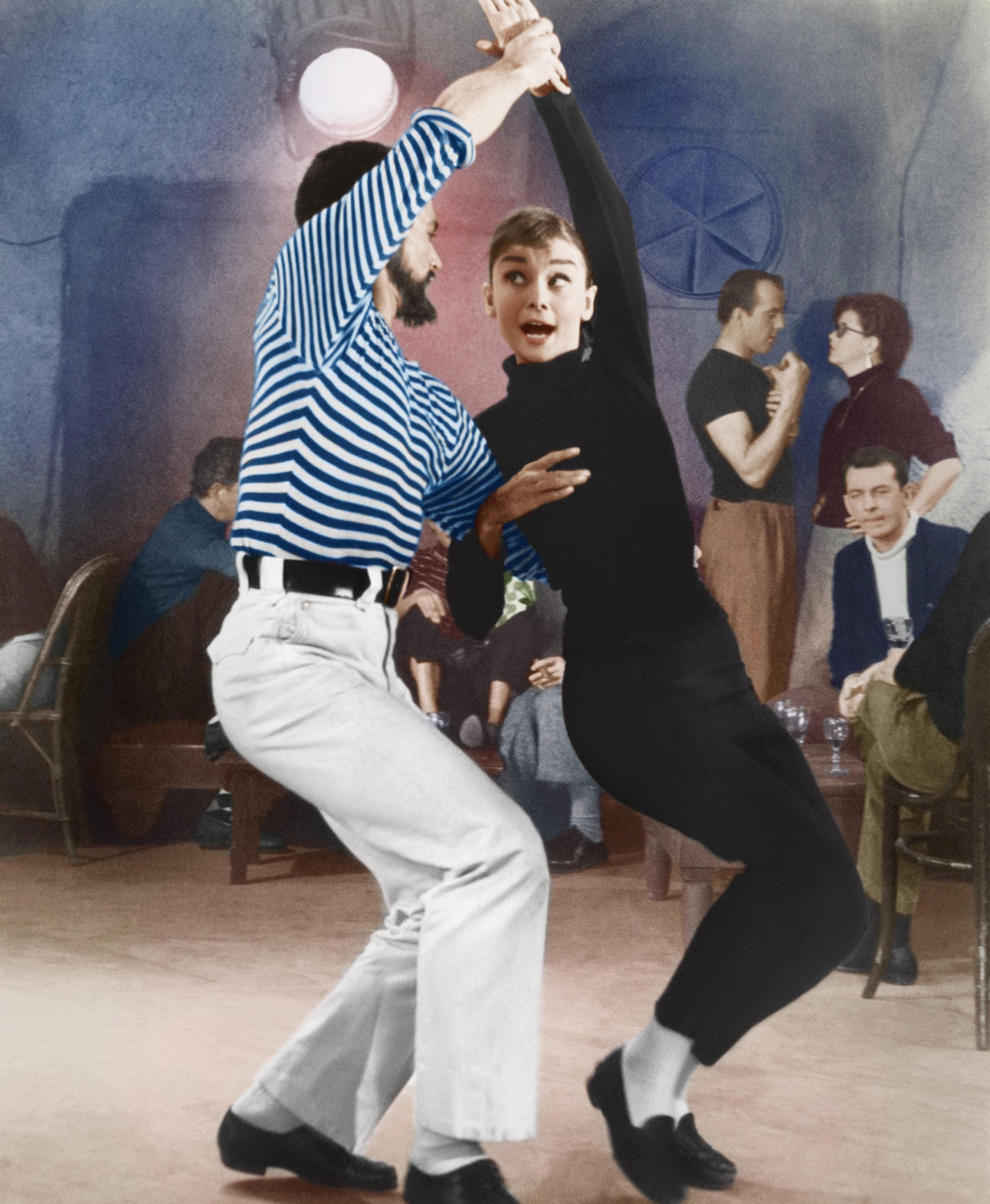 Dance is incredibly important to this musical. One of the most exciting sequences has 'Dick Avery', the older man, American photographer ending up in a café where Existentialism, jazz and dance are the order of the day. Audrey Hepburn sets the place alight with a dance, which in reality must have been choreographed by Astaire.