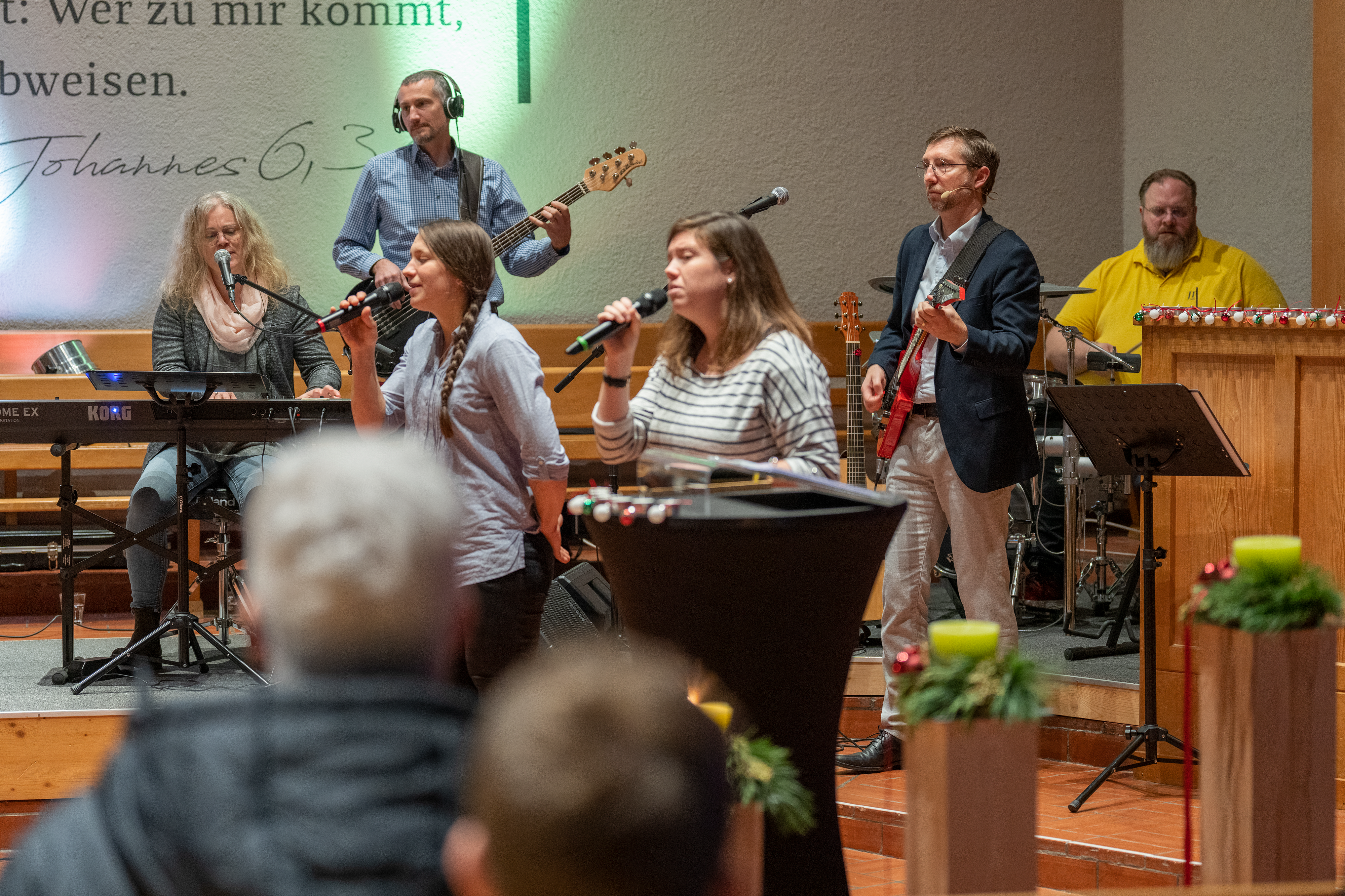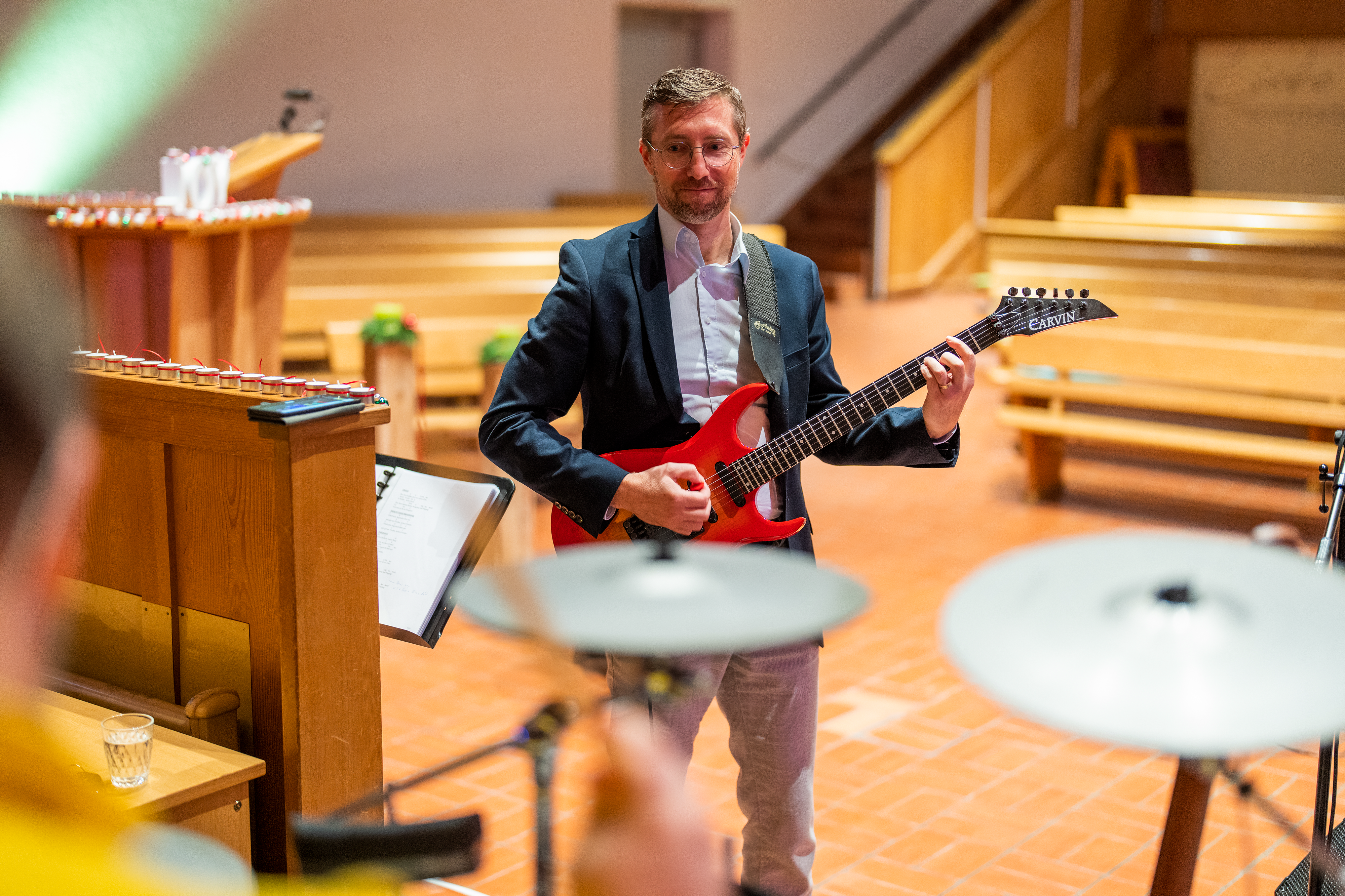"Ich wusste, wenn wir nicht mit Qualität reingehen, haben wir keine Chance, etwas zu etablieren", so Rupf über die Anfänge seiner Kirchen-Band. Er selbst hat als Jugendlicher einige Zeit lang Gitarrenunterricht genommen und ist seither autodidaktisch unterwegs. Seine Frau, ebenfalls ausgebildete Sozialdiakonin und im Moment in der Kirchgemeinde als Fachlehrperson Religion tätig, ist ebenfalls fester Bestandteil der Band. "Sie ist sehr musikalisch und trägt auch immer wieder Eigenkompositionen bei. Aber noch wichtiger war, dass ich von Anfang an wusste, dass wir miteinander funktionieren würden. Das war eine gute Grundlage." Eine Grundlage, die nach und nach mit einem professionellen Schlagzeuger und einer professionellen Sängerin sowie von einer Handvoll Laien auf Topniveau ergänzt wurde.