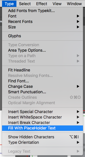 - Choose Type > Fill with placeholder text