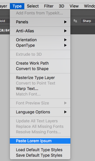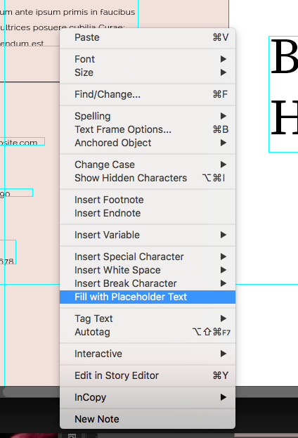 - Choose Type > Paste Lorem Ipsum