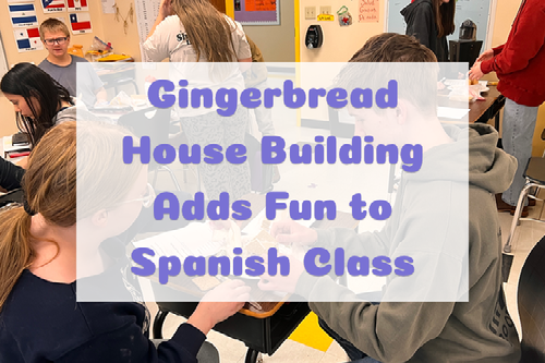 Students in Spanish class recently combined creativity and language learning through a festive gingerbread house activity. Working in teams, students designed and decorated their own gingerbread houses using candy, icing, and plenty of imagination. After completing their creations, students practiced descriptive vocabulary by explaining their gingerbread houses in Spanish—an enjoyable and hands-on way to reinforce language skills.